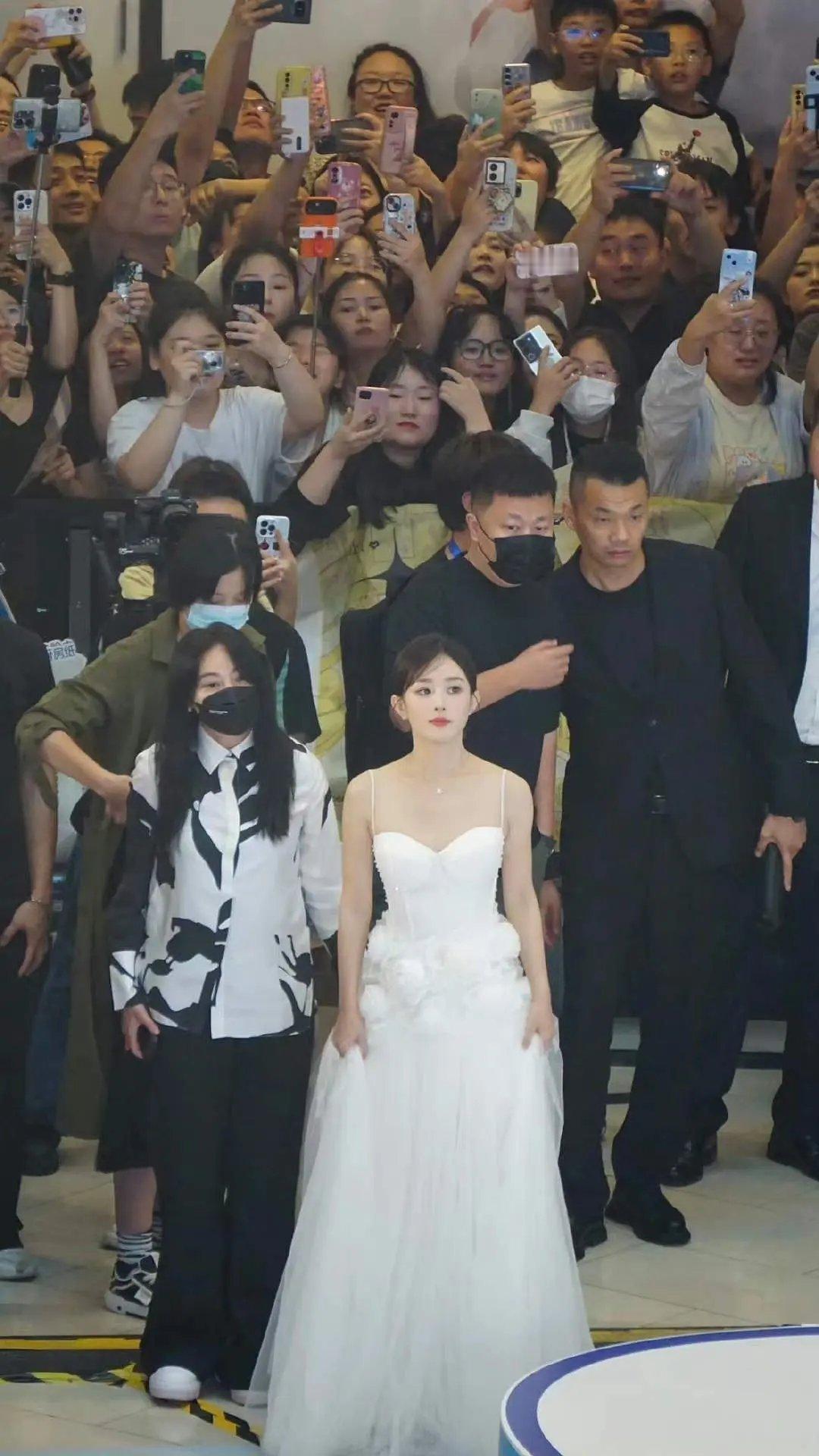 张天爱跟素人合影,胯真的好宽,大宅院似的