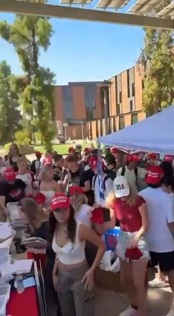 亚利桑那这个摇摆州的数百名大学生正在登记为特朗普投票,他们还戴上了醒目的红色MAGA帽子在校园中穿梭。 特朗普正在赢得年轻选民的支持。