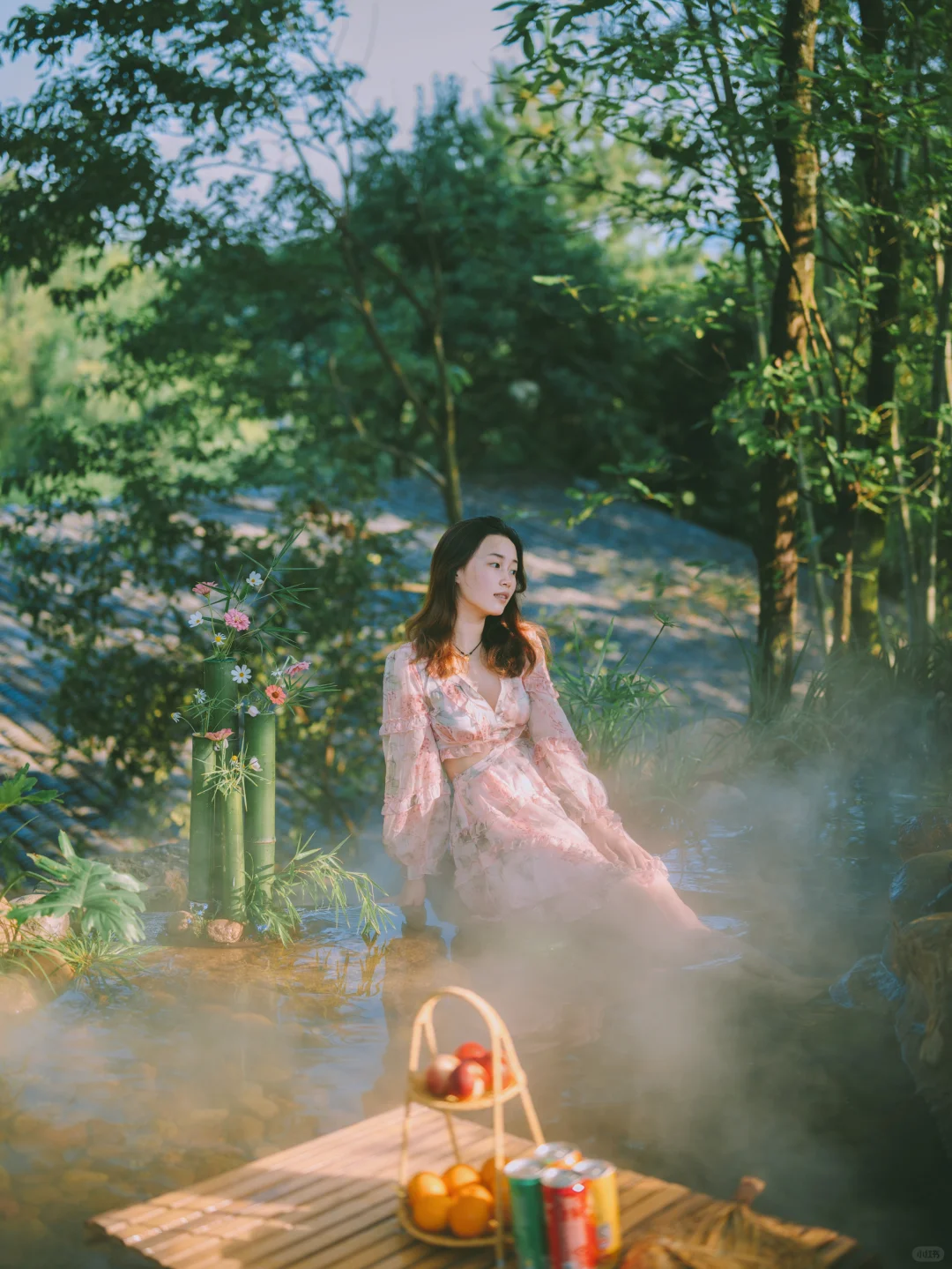 在山泉水里喝一场下午茶,还有溪水冰西瓜🍉一整个大西瓜放在溪水里,拍照真的超级出片哦