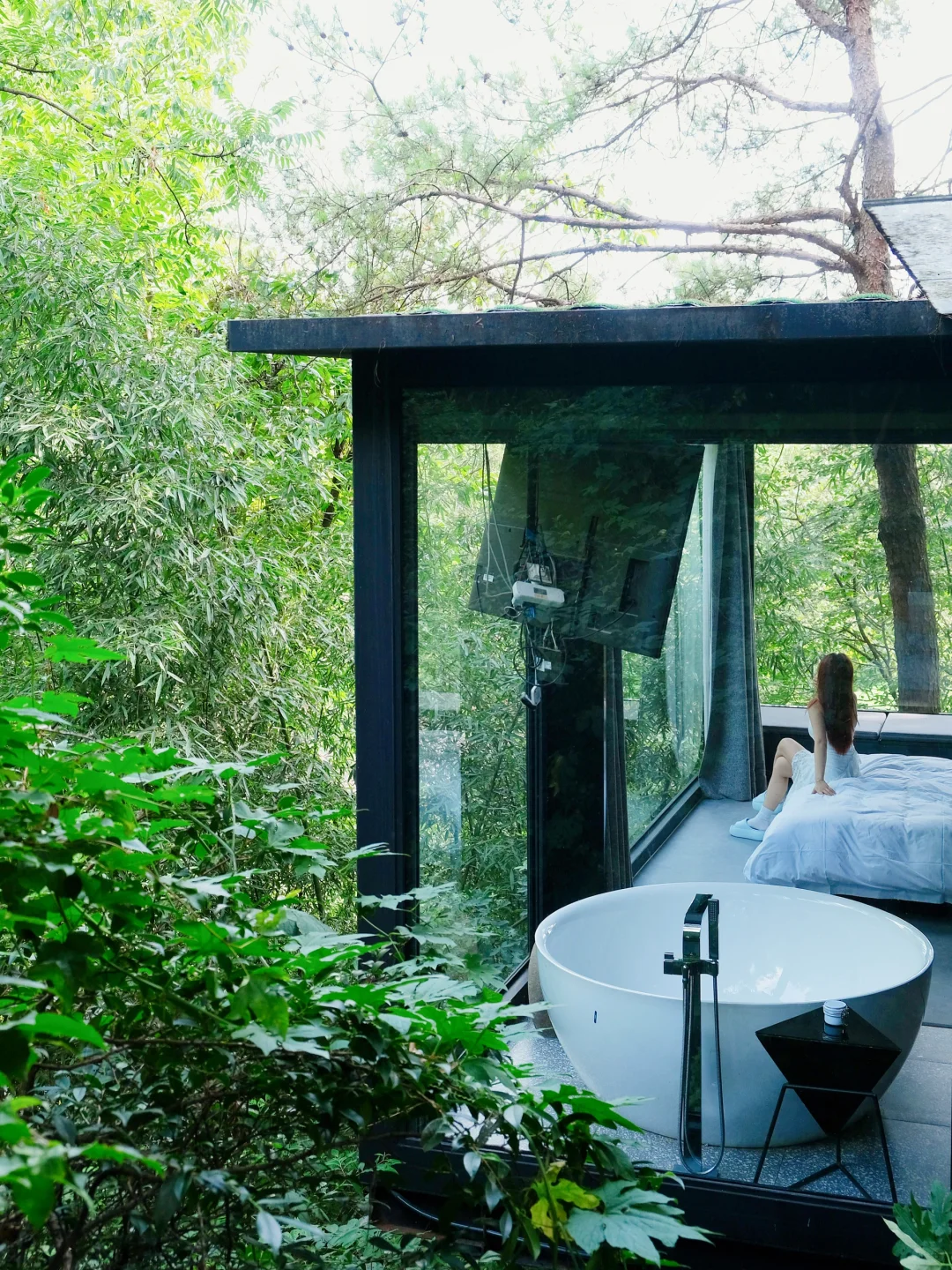 拉开窗帘就是山间葱茏的绿意🍃还有森林浴缸