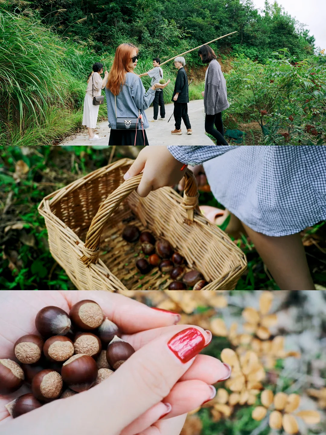 ▪️民宿与山林绿野相结合,与管家一同上山捡板栗、做手工,晚餐享用一捉地道质朴的特色菜肴,最后一玫瑰花泡澡收尾,真正融入山间的松弛生活
