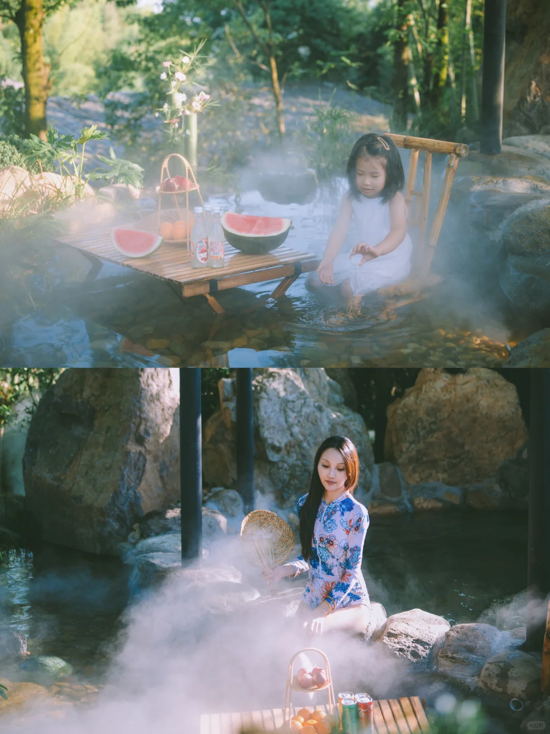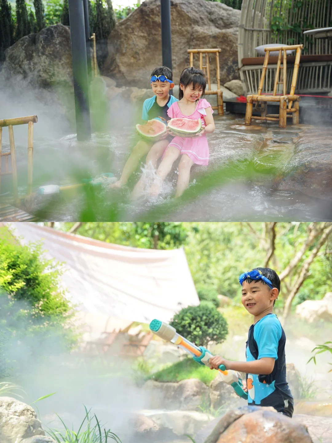 打水仗、冰西瓜、萤火虫、山泉玩水、滑梯泳池