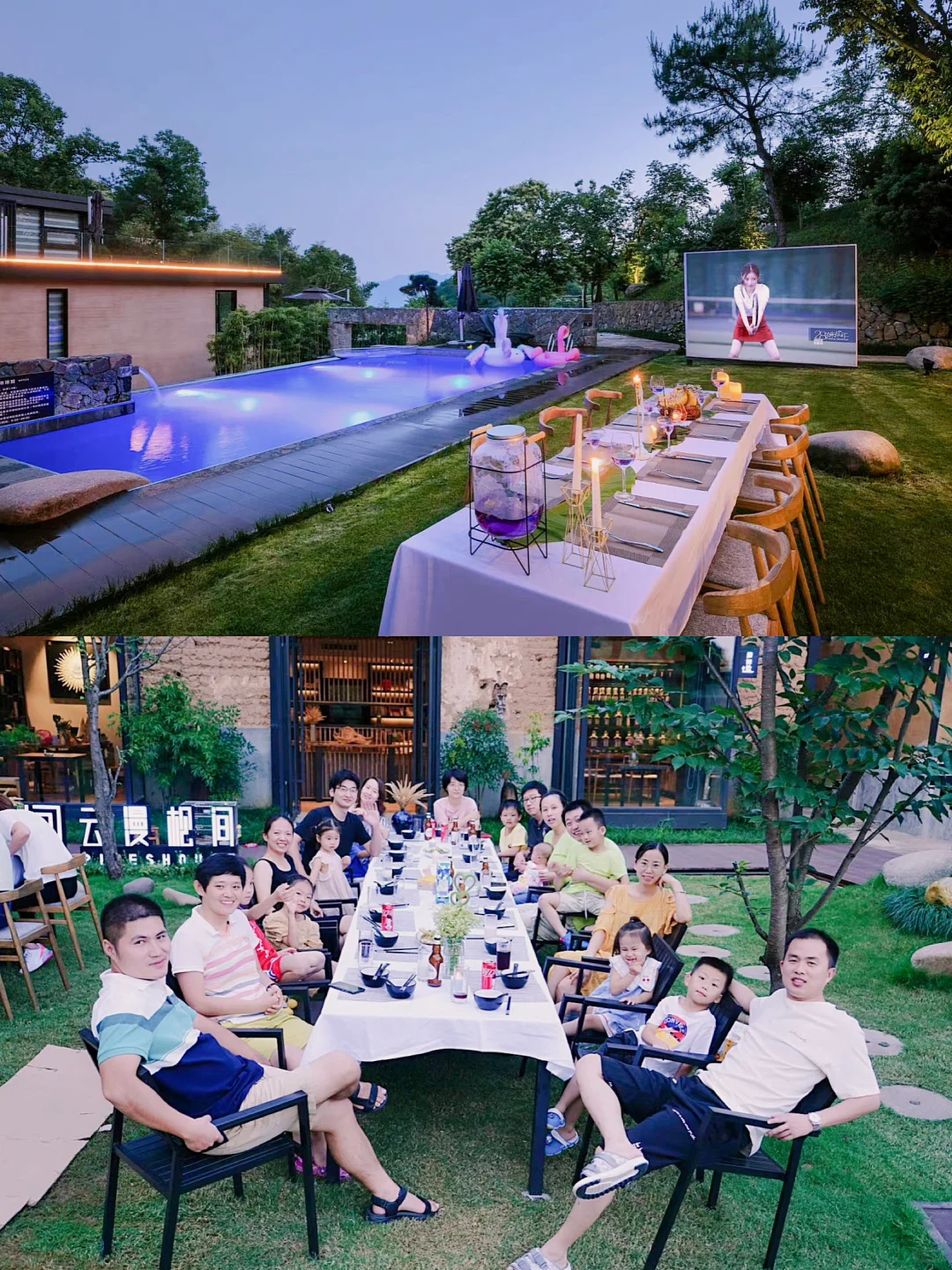 户外庭院大草坪,可容纳50人左右,草坪晚餐、露营、烧烤BBQ、露天电影、唱K,旁边就是泳池滑梯,可以尽情玩水......大家有需求,管家小姐姐也会尽全力配合哒