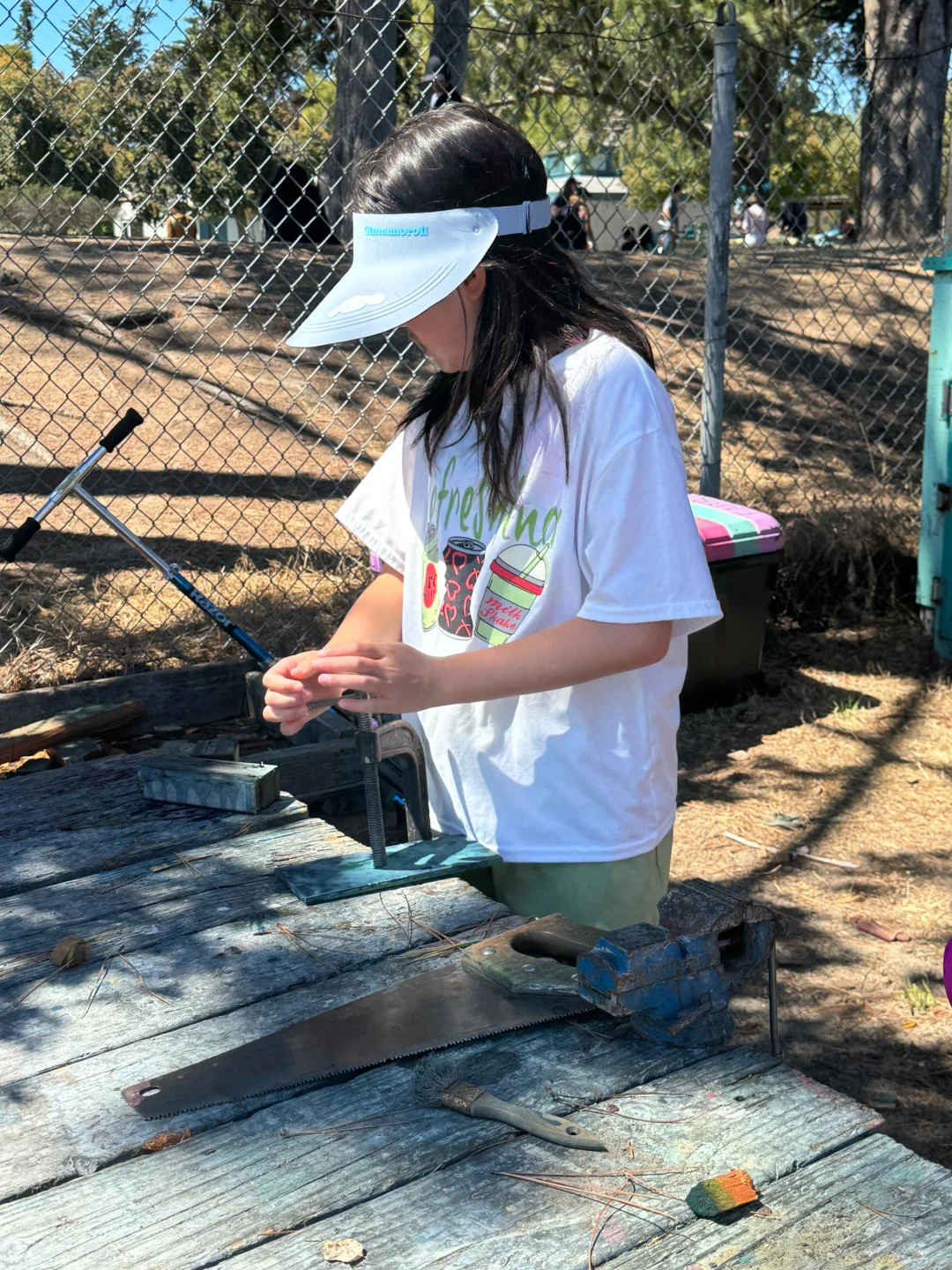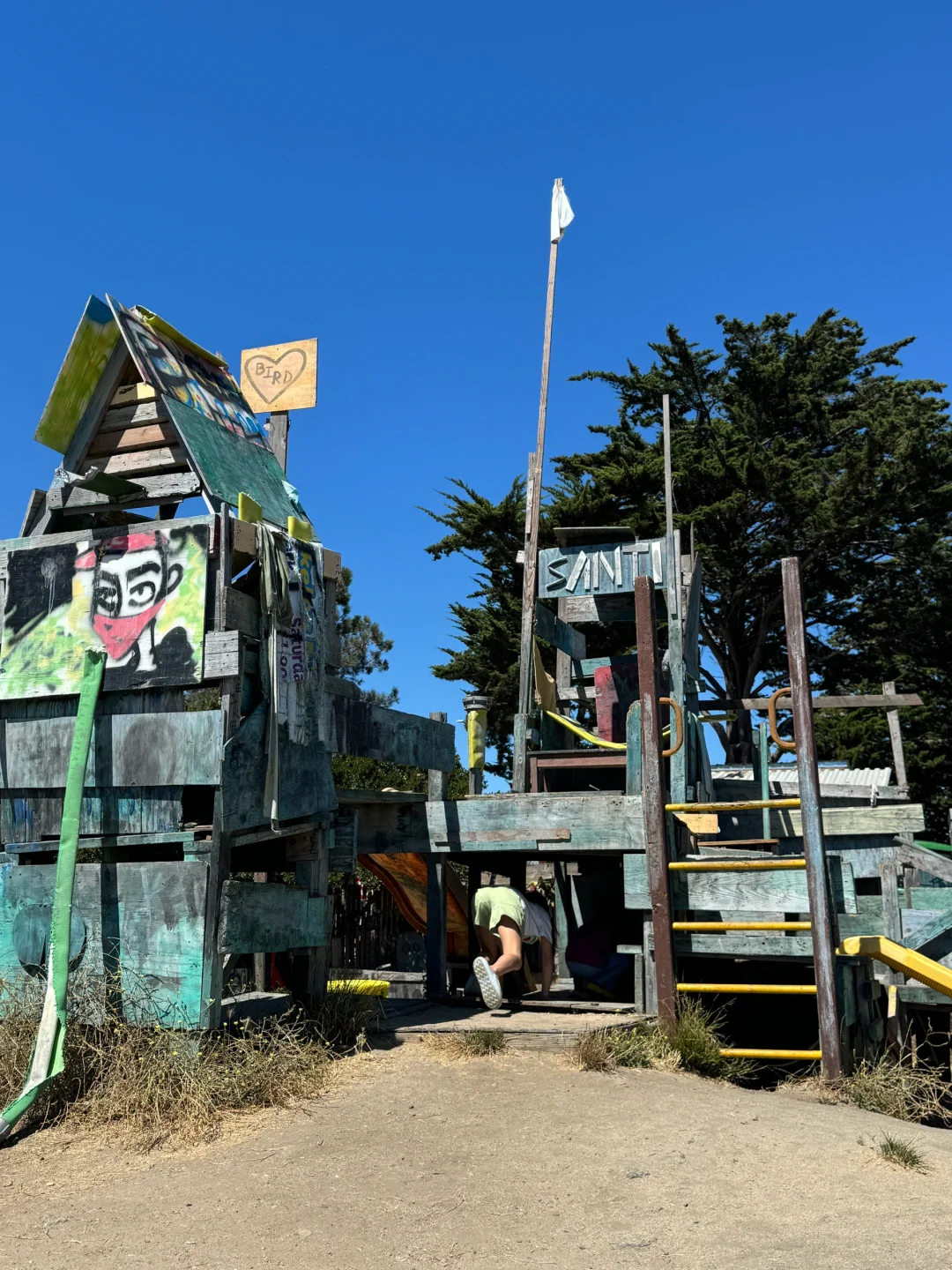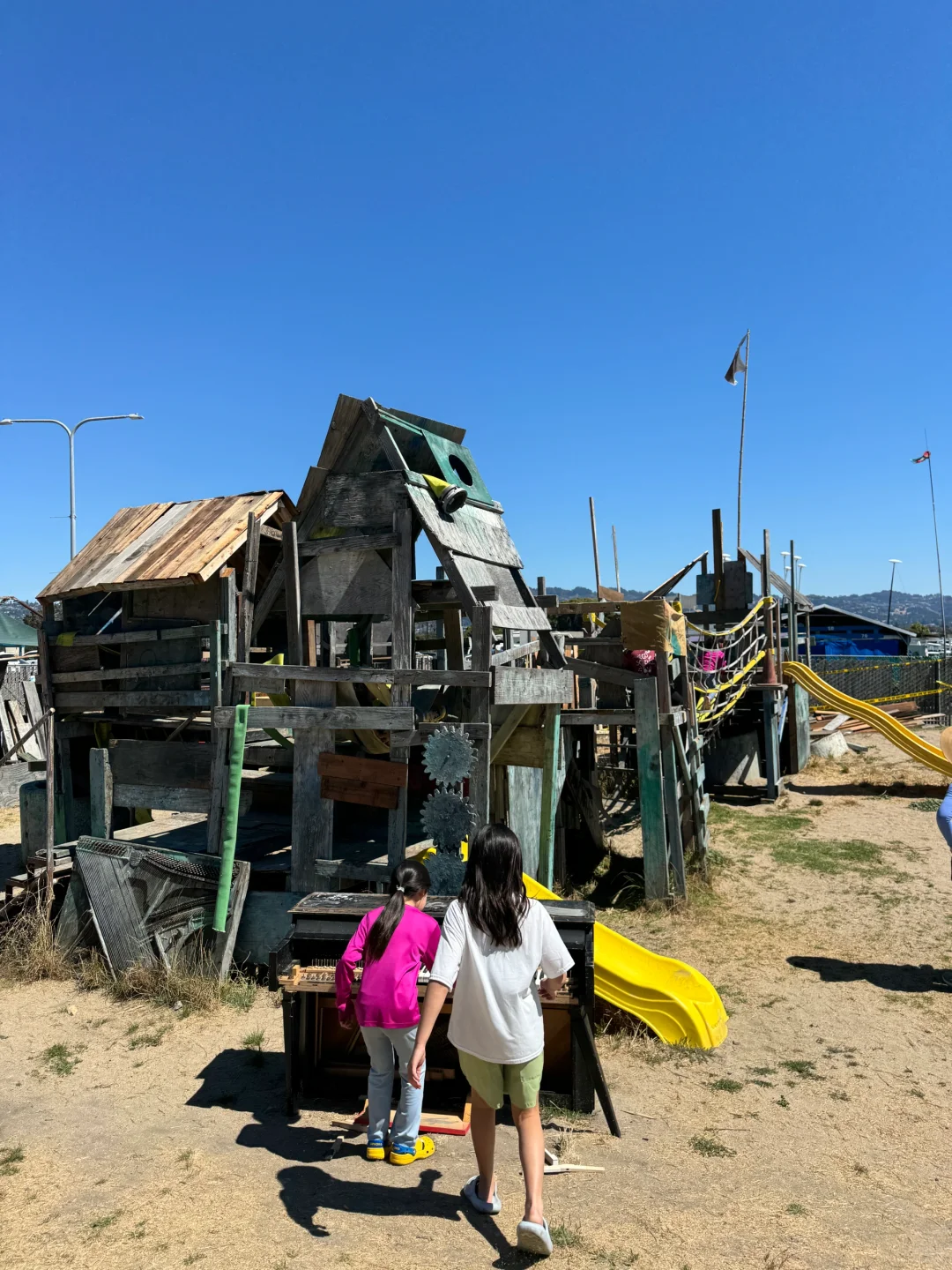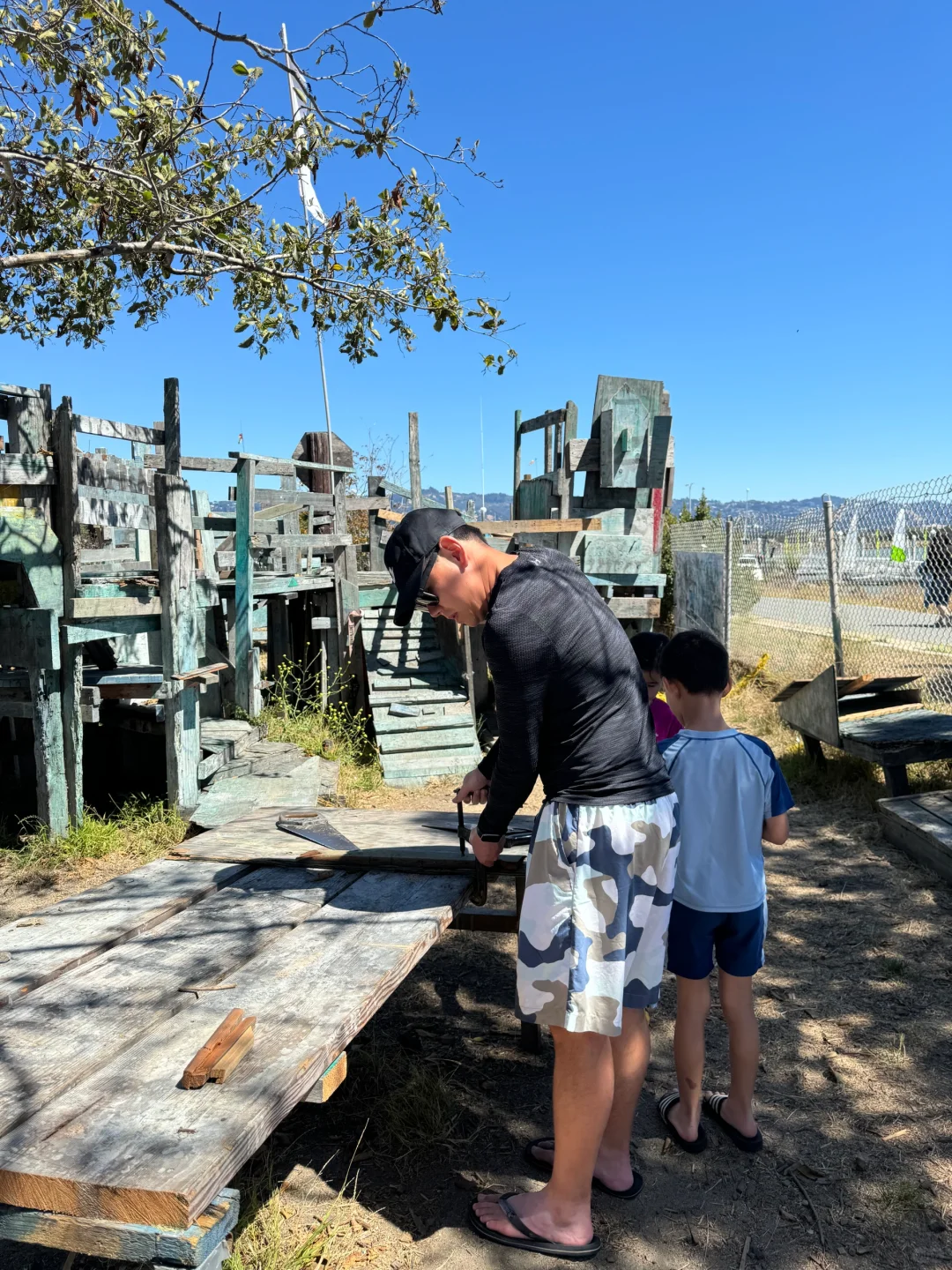 附近有个废土风小游乐场叫Adventure Playground, 里面全是废品建的,门票免费。娃可以用斧头劈柴,锯木头,刚进去我看着都觉得有点心惊胆战的啊,生怕娃伤到自己,但是看那些老美家长都特别淡定,就让娃自己在那歇钉子。。。娃玩的很开心,锯木头锯了半天[捂脸R][捂脸R][捂脸R]