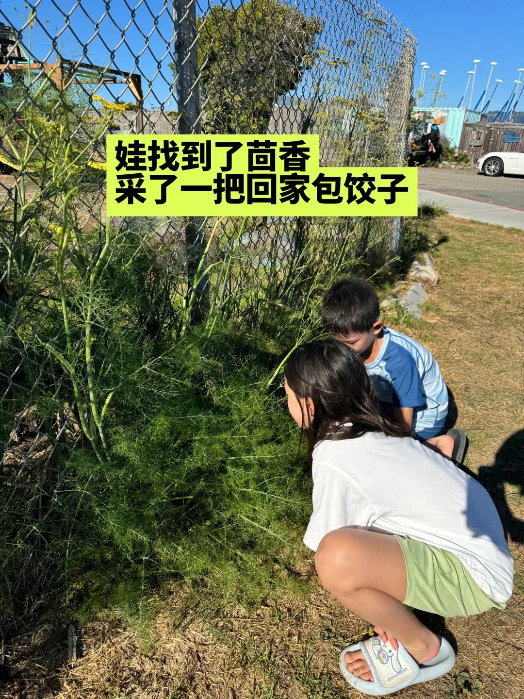 临走的时候俩娃在路边发现了茴香,我还在质疑这是不是茴香的时候,呵呵可专业的说这就是茴香,因为她以前跟姥姥去山上采过[偷笑R][偷笑R][偷笑R] 果断薅了一把回家让奶奶给包饺子