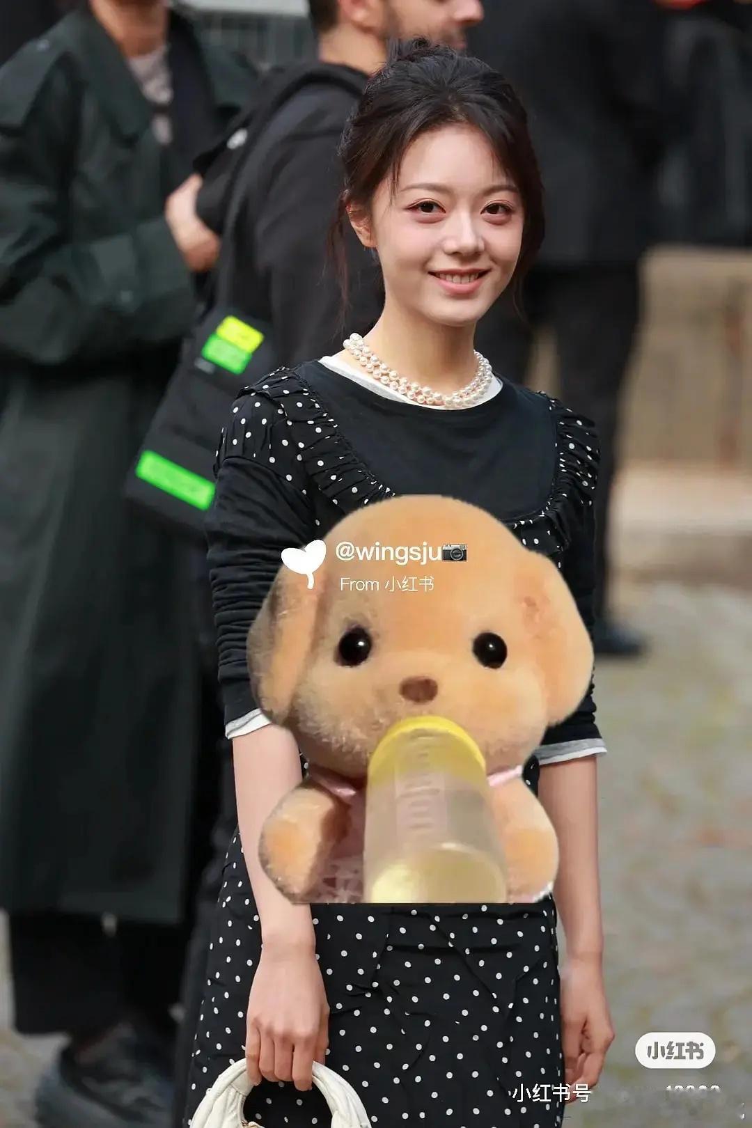 张天爱跟素人合影,胯真的好宽,大宅院似的