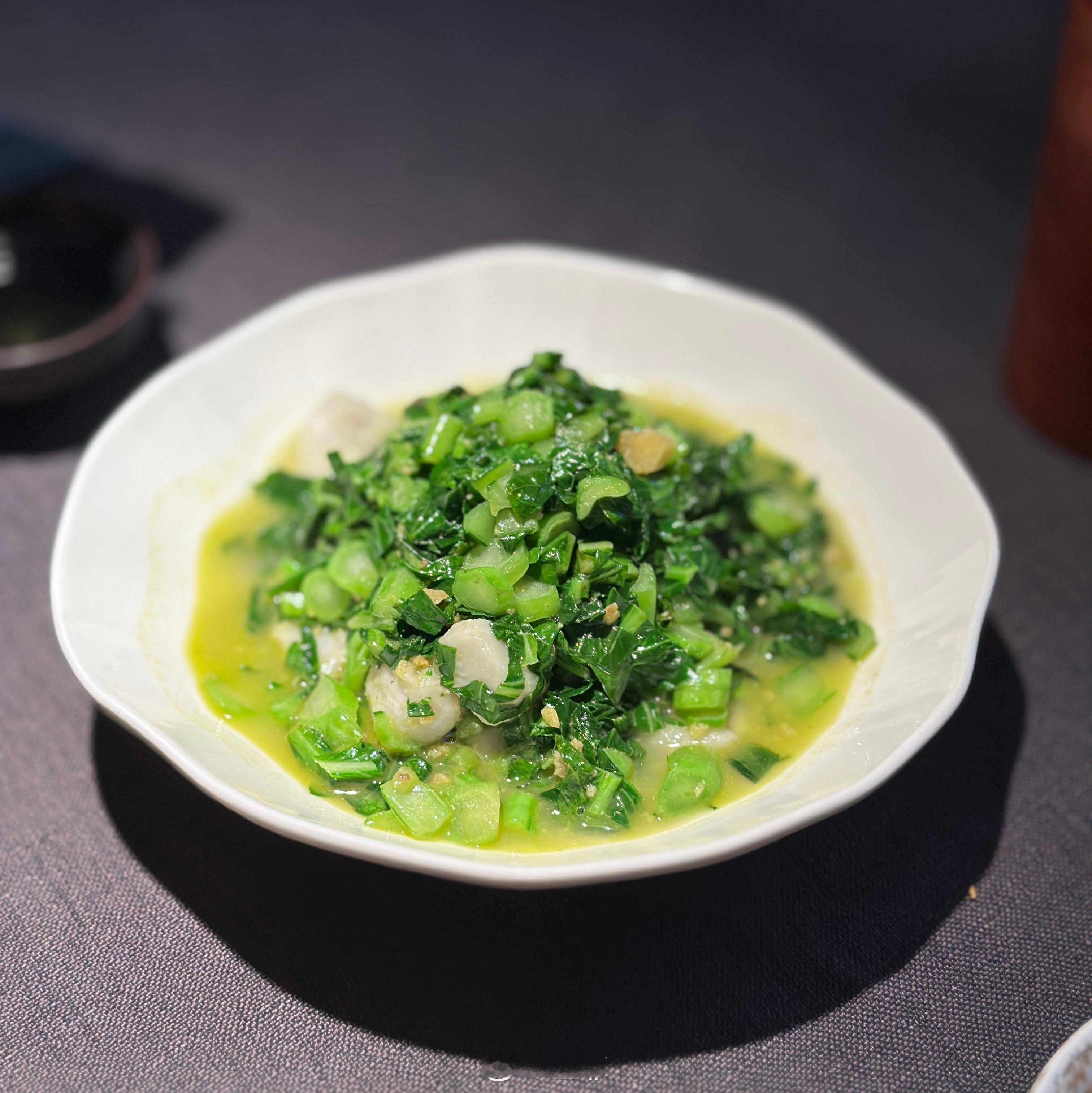 小时候奶奶常做的小菜,青菜清净切碎,暴腌15-20分钟,脱去部分水,让口感更清脆。配上猪油渣和芋艿,油润咸鲜