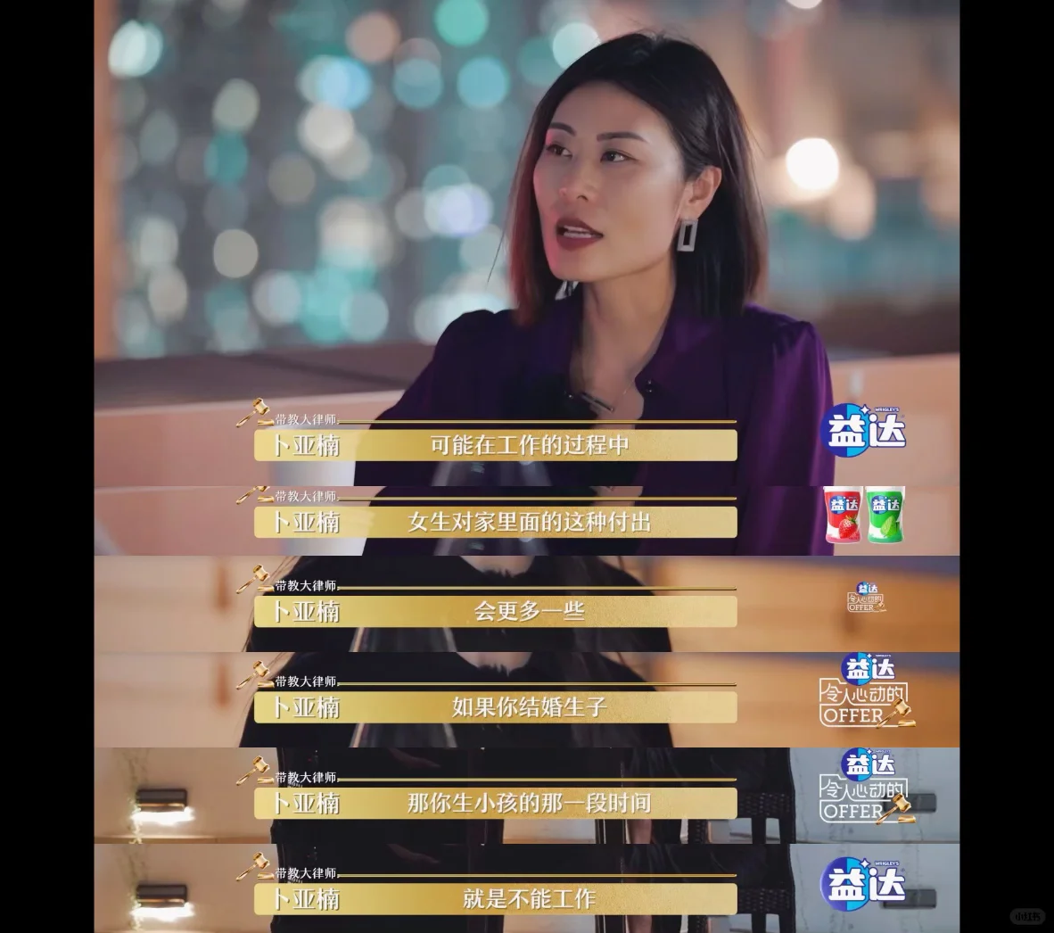 卜大律师和骆鑫、徐琬婷关于女性职场的对谈说了一个很重要的点,那就是不要轻易下牌桌。卜大律师提到女性生小孩那段时间很难兼顾工作,她和她师姐怀孕后基本工作到生的前几天,坐完月子就回来工作了。这其实是女性困境的一种,它指向了一个现实问题:怀了宝宝应该好好休息,但职场上的机会来之不易,松懈了,可能之后的发展会受限。女性权益并不是天上掉下来的,而是争取而来的,女性职业工种变得越来越丰富,在100多年前是难以想象的事,所以能不下牌桌,就尽量不下牌桌。