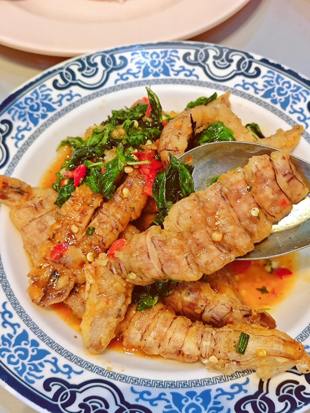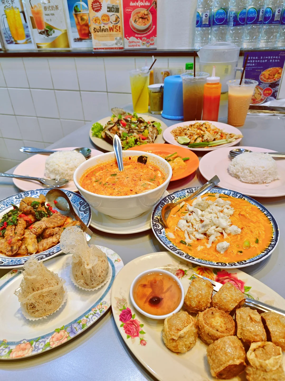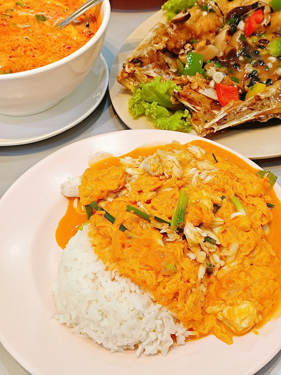 咖喱蟹肉饭🦀 几乎每座必点 大粒饱满的蟹肉 鸡蛋炒得又嫩又滑 嘎抛皮皮虾 皮皮虾🦐很大只而且都是剥了壳的 米勒叶炒出来特香 巨下饭 豆豉姜葱爆鲈鱼 外酥里嫩 有点偏中式料理 小吃必点他家的蟹枣 还有一口咬下去爆浆的金沙芋泥角 点了满满一桌 人均才30r 这价格也太感人了🥹🥹 榴莲冰淇淋可以带走路上吃 🏠:Chula 50 kitchen