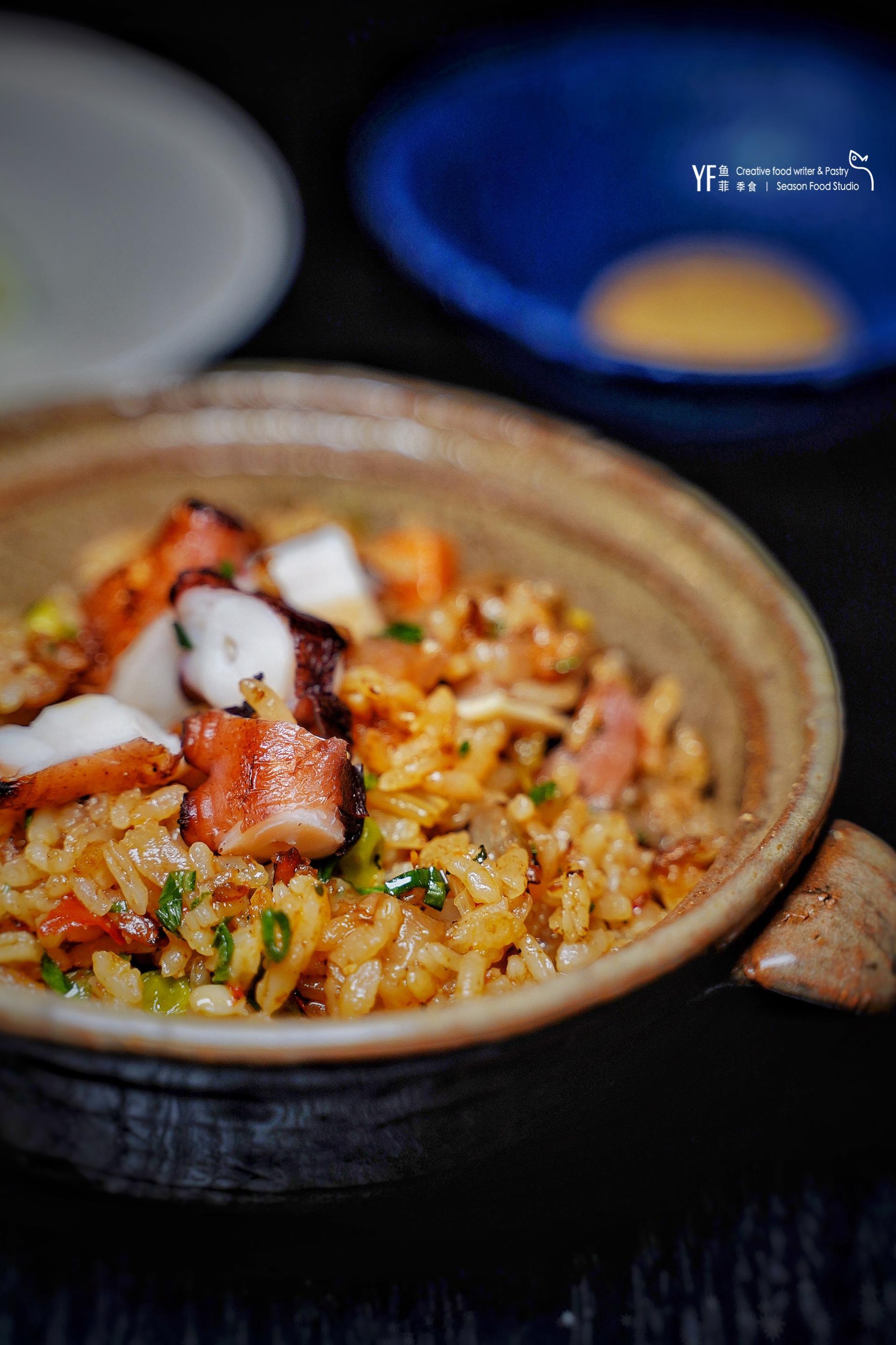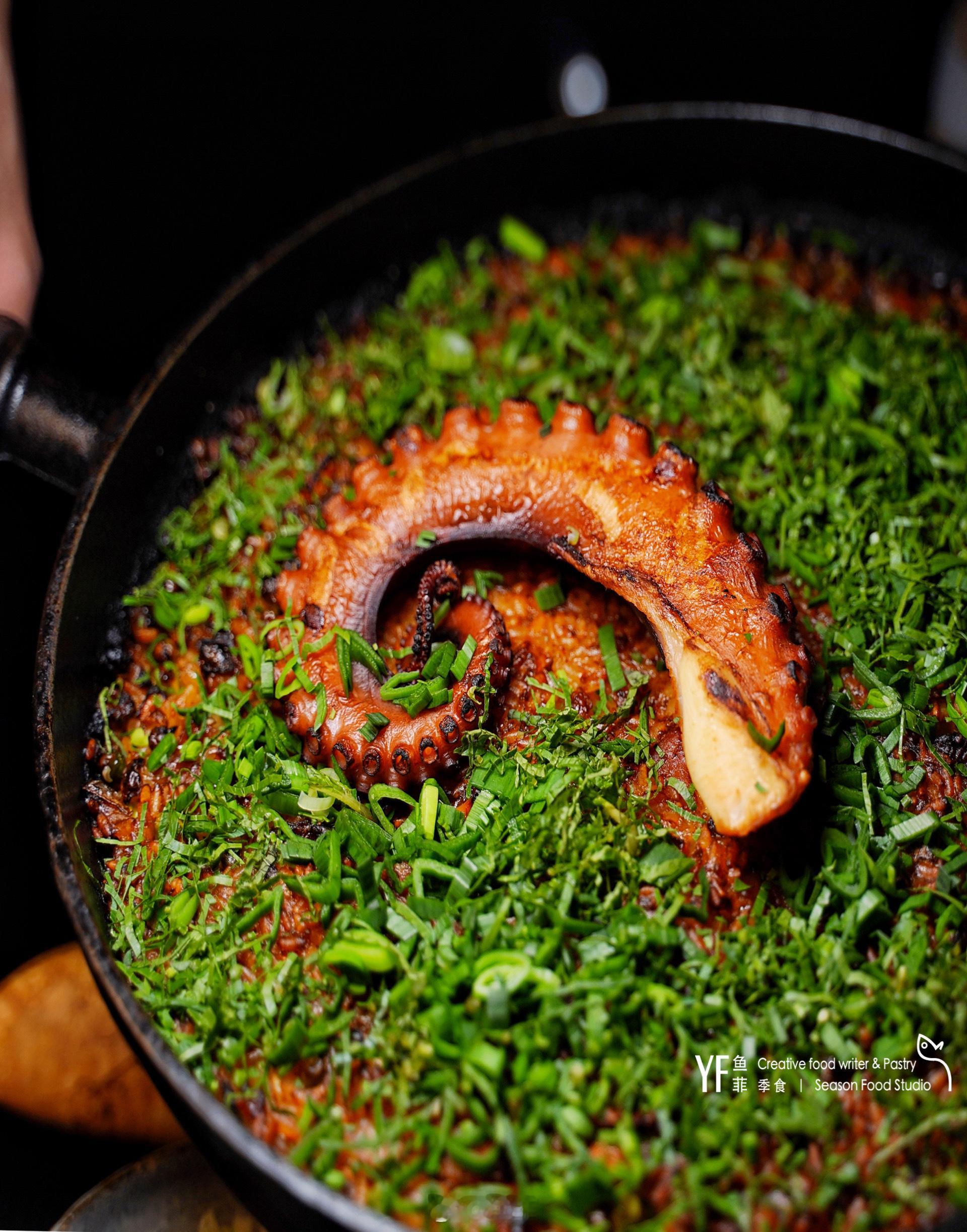 主食看着就很让人有食欲,一锅海鲜饭会和几位客人同享。章鱼烤的软而有嚼劲,比较惊喜的是猪耳朵炖道已经像猪皮冻一样半融化状态,拌在饭里吹弹可破。淋上柠檬汁感受饭粒的清爽,也可以搭配辣酱增添乳化的口感,有点吃奶酪的醇厚感!