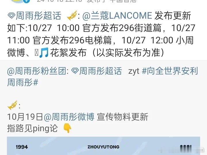 周雨彤本来要宣的兰蔻物料延期了