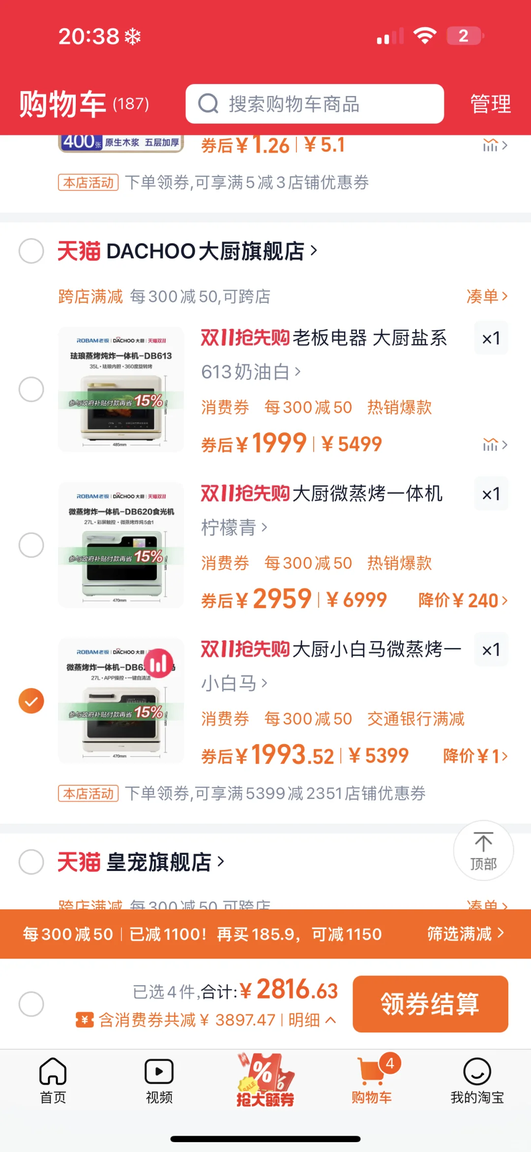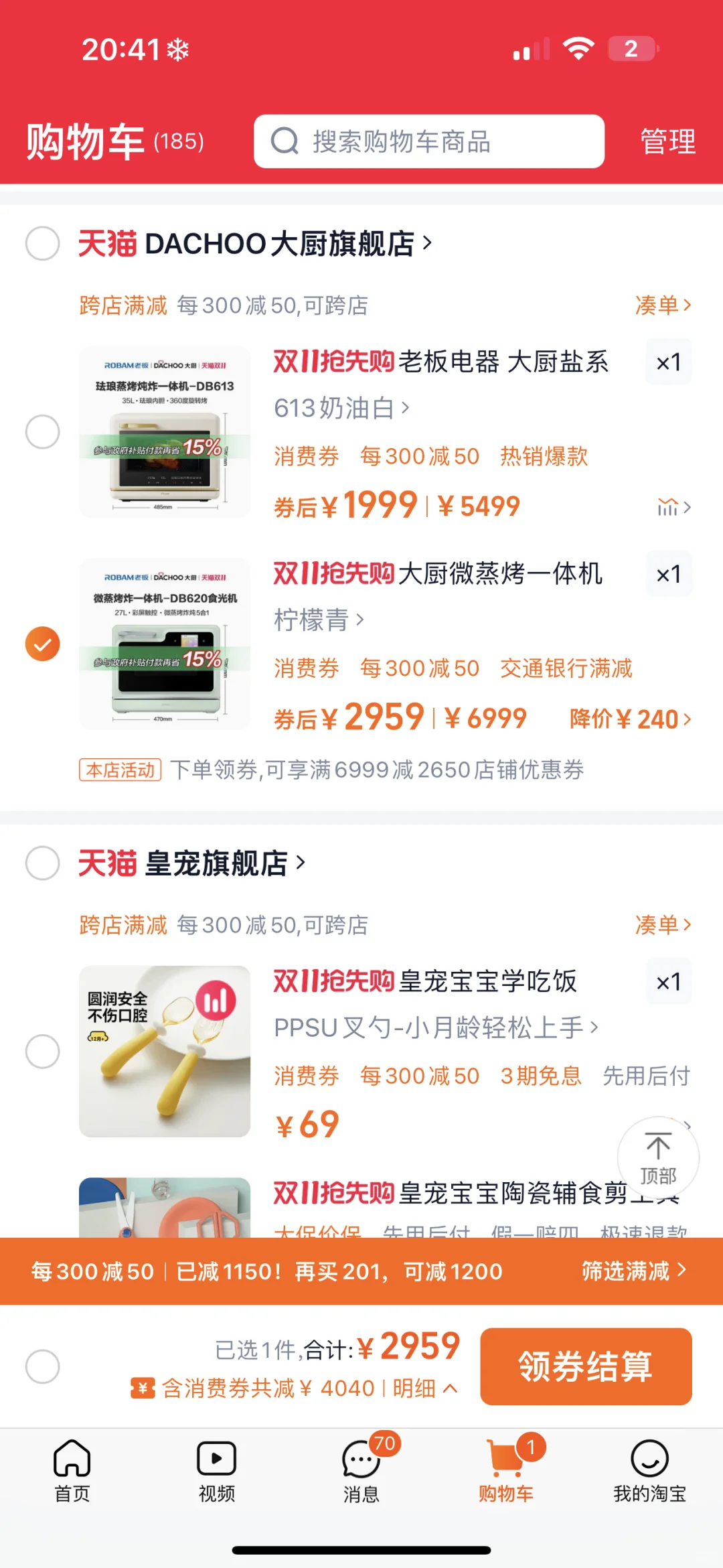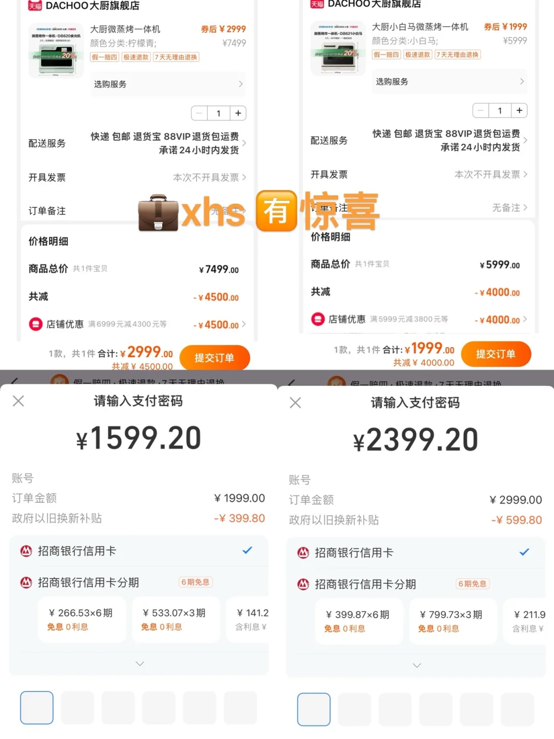 老板电器旗下大厨食光机蒸烤微炸炖一体机DB620日常价格3199,双十一最低到手价2399;大厨小白马蒸烤微炸炖一体机DB621日常价格2199,双十一最低到手价1599。叠加跨店满减,还能获得更加惊喜价格。