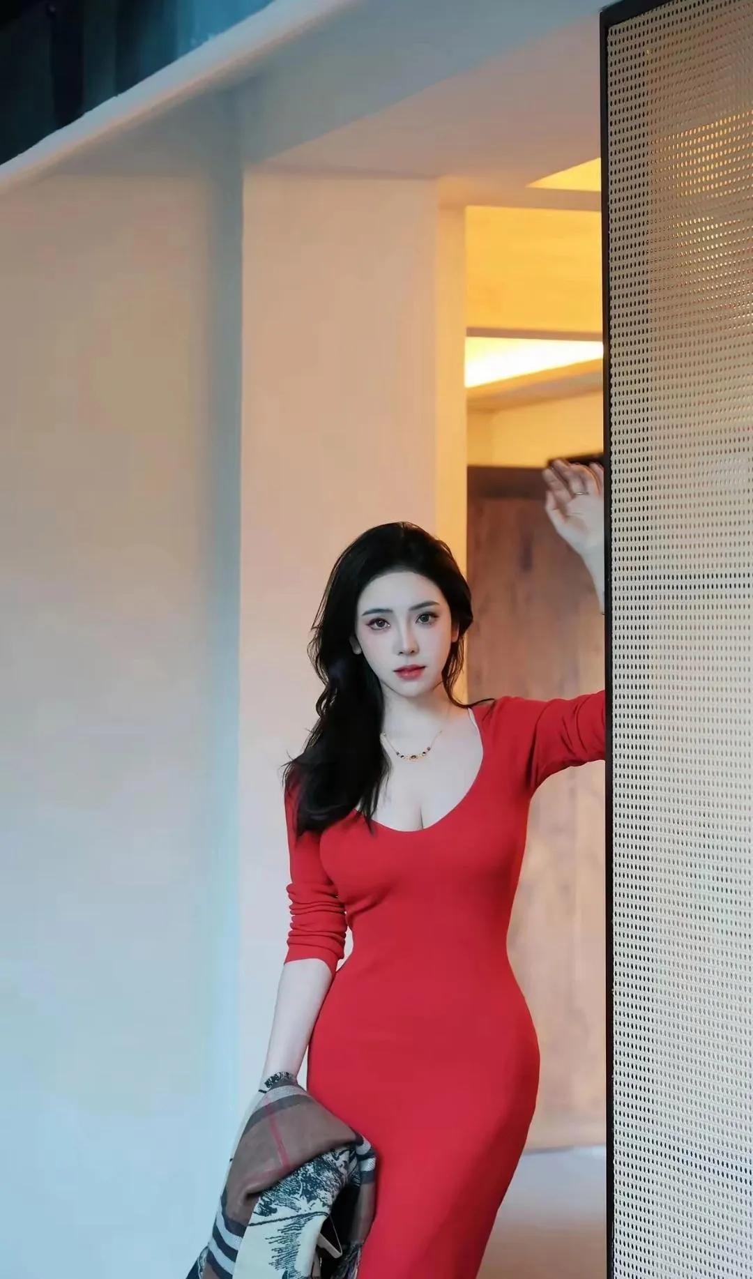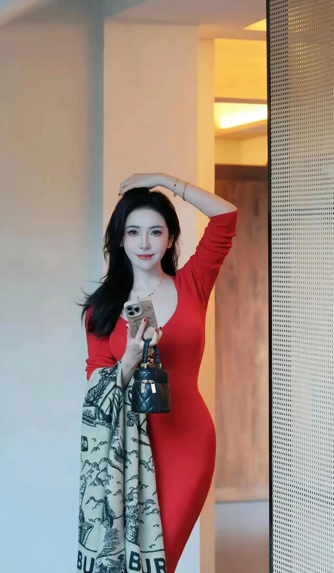 她的红衣如烈火般炽热,又如晚霞般温柔,完美地描绘出她的美丽与气质。