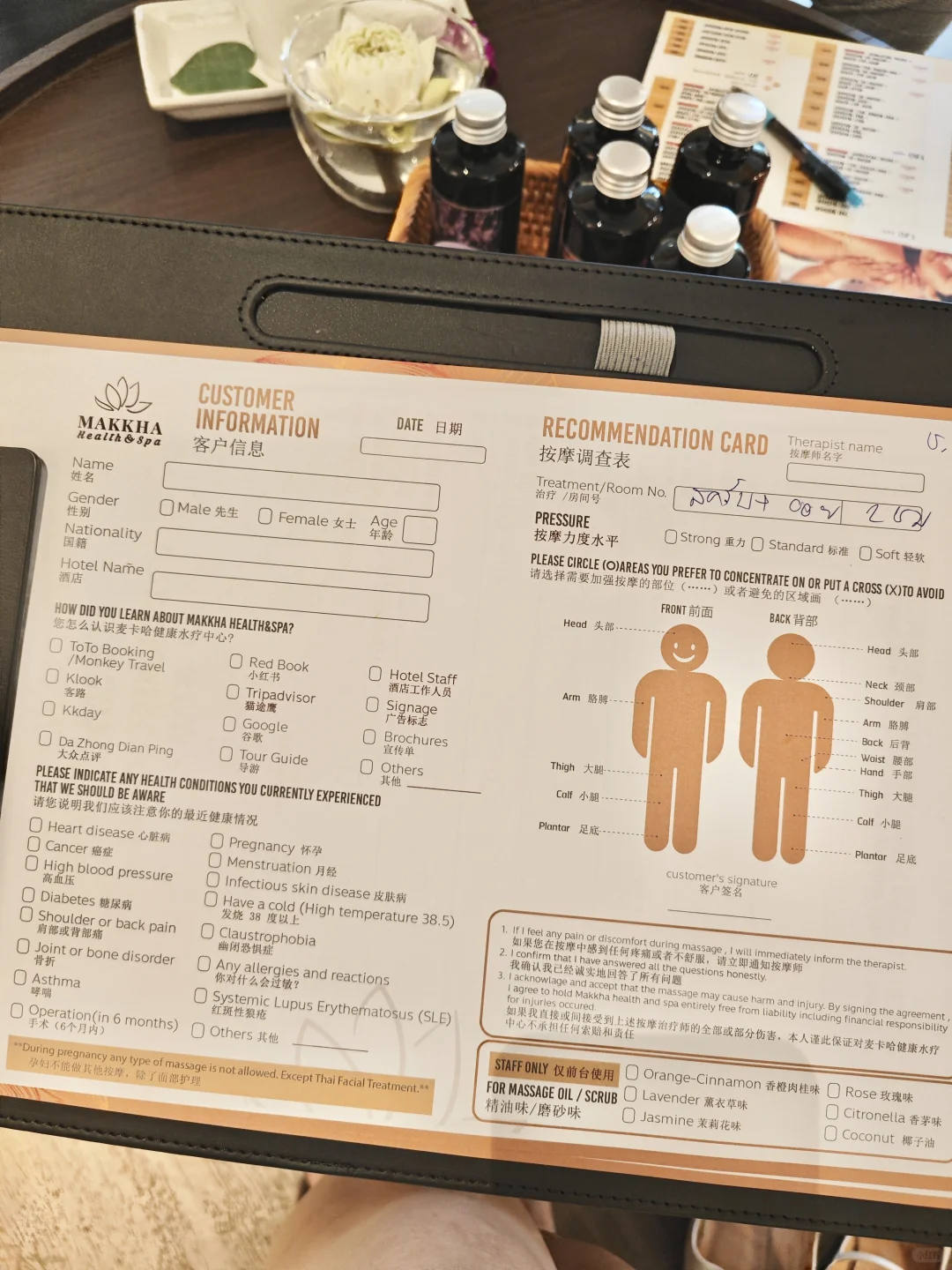 独栋别墅 环境优雅~ 一进门就有欢迎茶点 不用担心沟通不方便 中文表格🉑以选择按摩力度 和需要着重按摩的部位💆🏻♂️ 我选的身体磨砂+精油按摩 技师手法专业娴熟👍🏻 刚开始十多分钟就睡着了😂 按摩完后再泡牛奶浴🛀🏻 一套流程下来 感觉全身焕然一新 皮肤嫩到爆! 价位中等⭐⭐⭐⭐⭐ 还有免费🆓接驳车(Asoke & Phrom Phong 区)