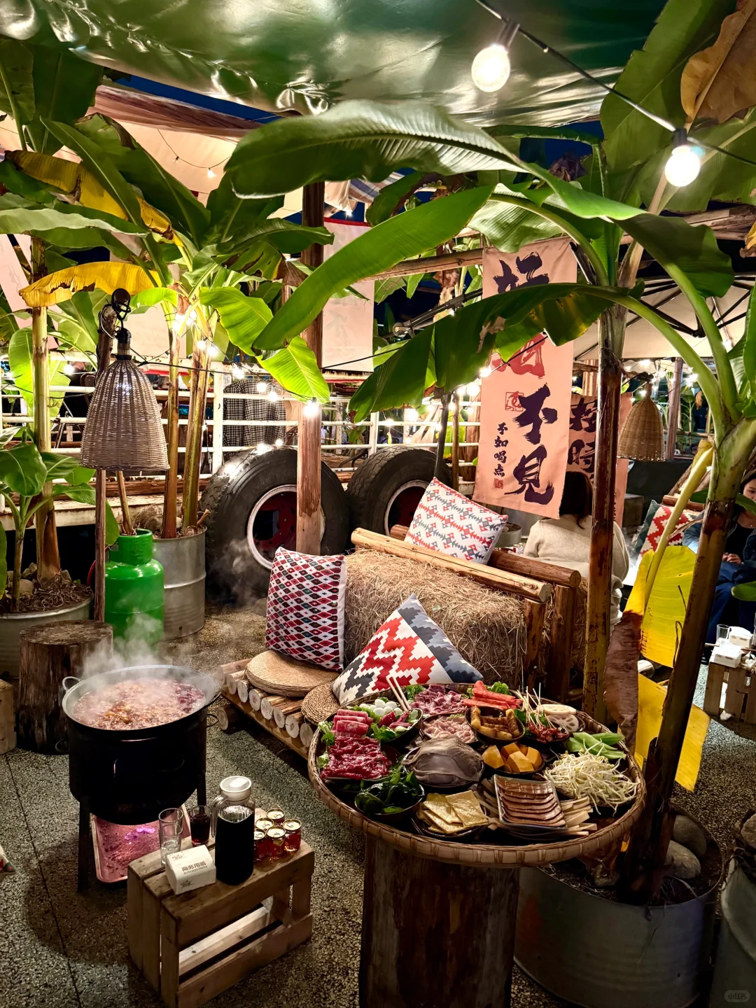 和姐妹们秋天整一顿 幸福感满满的火锅很有必要! 在黄桷坪易烊千玺旁边 室外火锅真的太有感觉啦~ 美拉德风格浓郁的热带雨林风格 氛围感真的很绝…