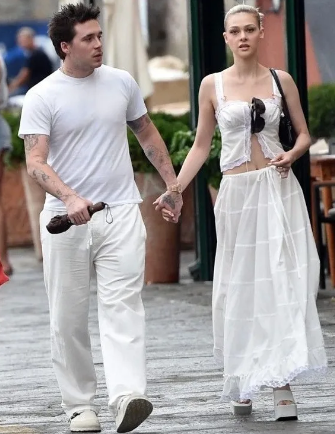 贝克汉姆大儿子和大儿媳妇,大儿媳妇的穿着还是很时髦的,相比之下大儿子的穿着就太普