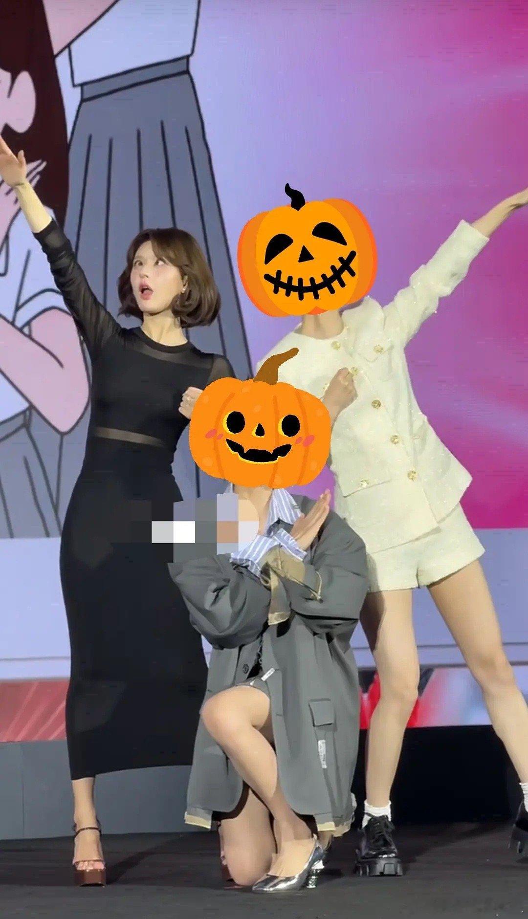 张天爱跟素人合影,胯真的好宽,大宅院似的
