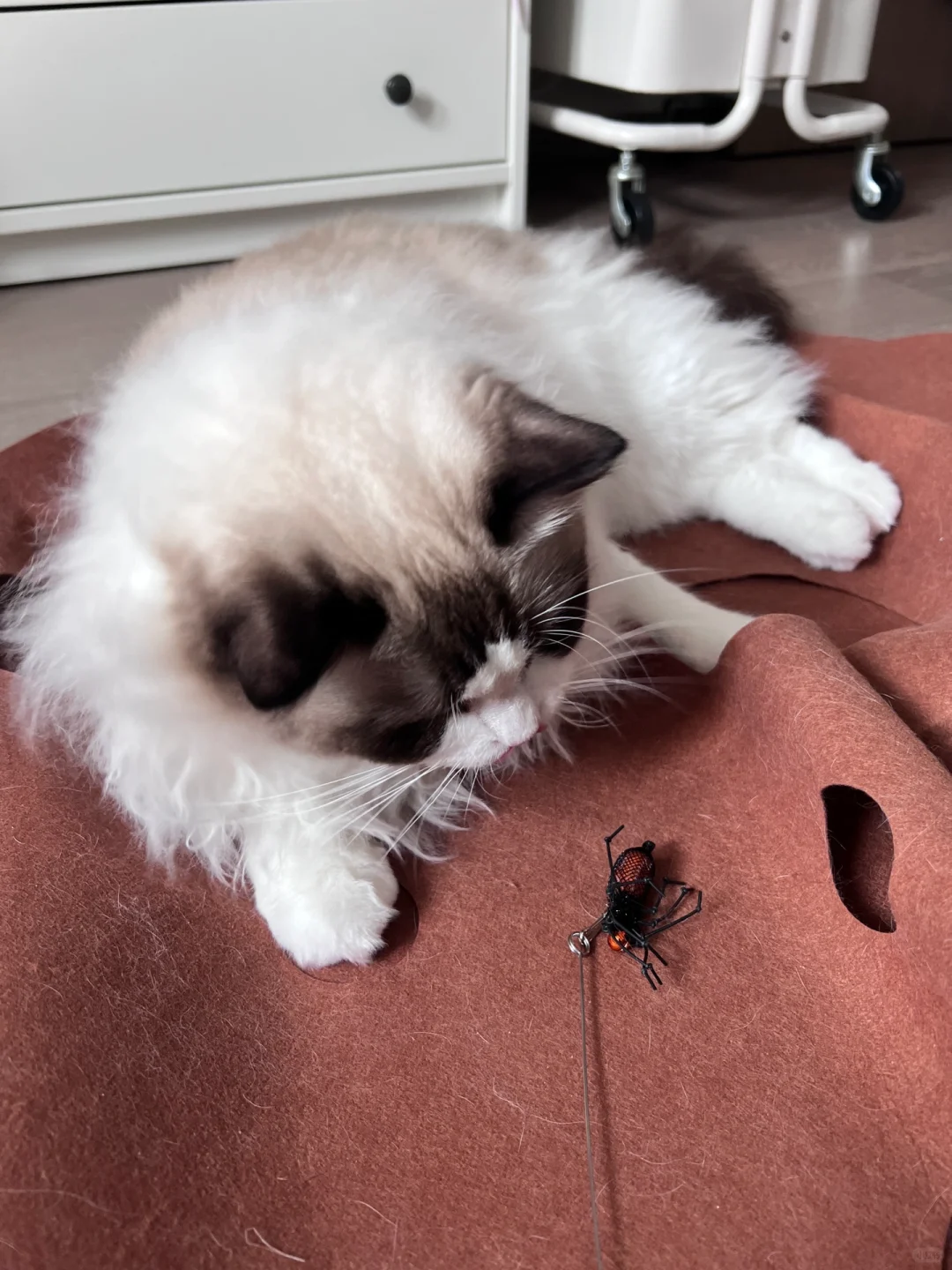 拿到手依然会被实物的精致度所折服。想必作者在设计这款蜘蛛的时候一定花了不少心思,对美感的追求,和对满足猫咪的感官需求上,都做到了很好的平衡。