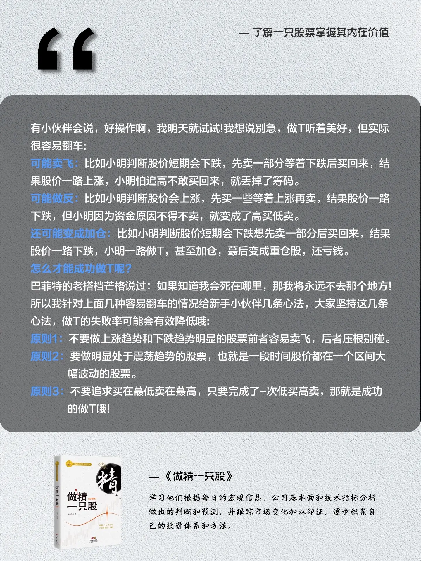 做精一只股也需要有耐心和定力的!股票市场充满了波动和诱惑,我们不能被短期的市场情绪所左右,要坚持自己的投资策略,相信自己的分析和判断。这本《做精一只股》从股票介绍-政策分析-市场分析-股票性质等多方面进行了讲解,阐述了市场复杂多变的环境如何进行选股,本书也强调了专注于一只股票的重要性。在如今纷繁复杂的股市中,很多投资者往往过于分散投资,试图抓住每一个机会,结果却常常不尽如人意。而做精一只股,则要求我们深入研究、了解一只股票,掌握其内在价值和发展趋势。通过做精一只股,我们可以更好地实现财富的增值和保值,赶紧阅读起来吧!