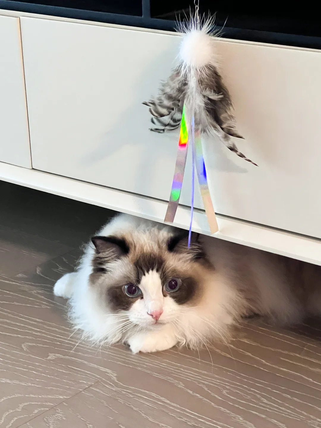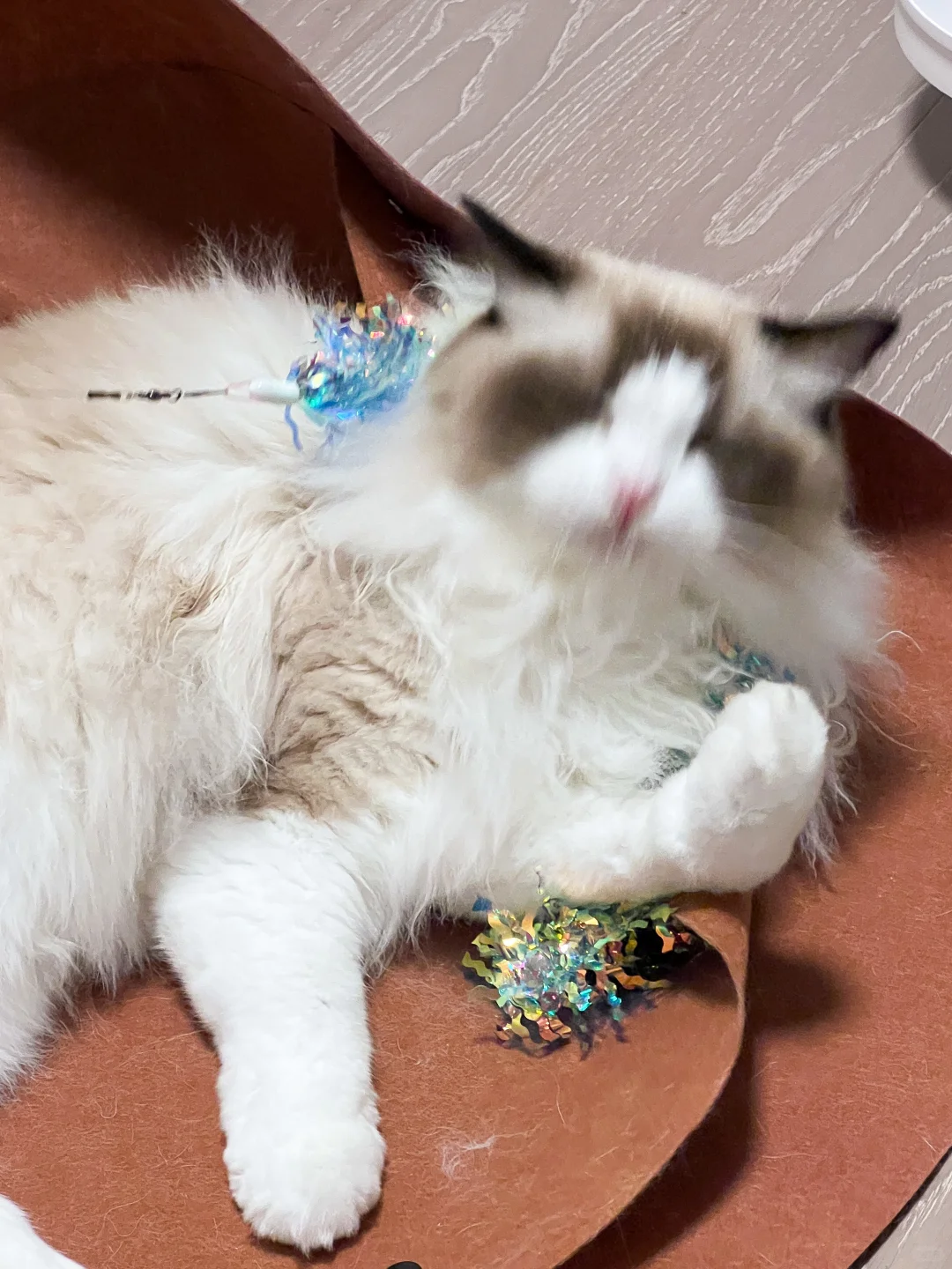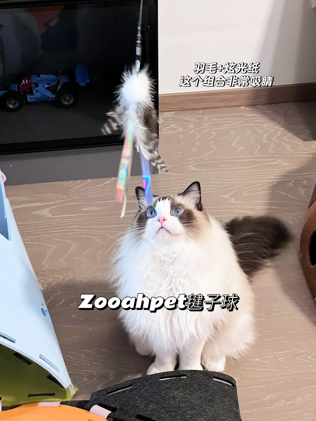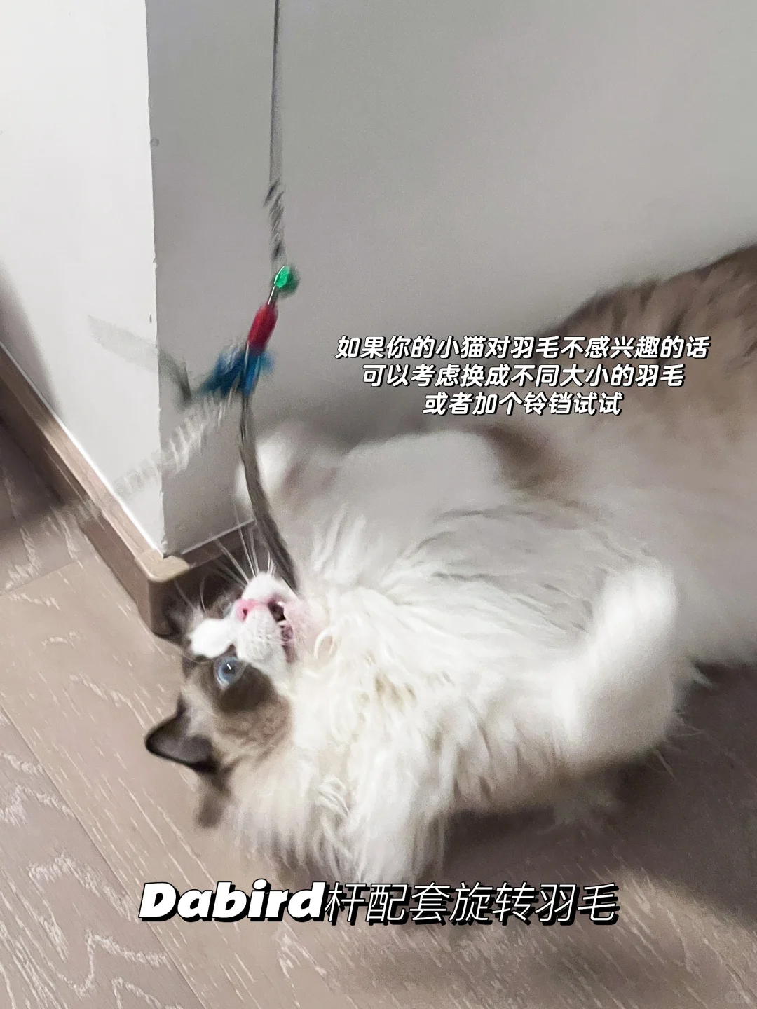 3. 不要因为猫咪对一款玩具几次提不起兴趣就放弃这款玩具。天生我材必有用,一款玩具被开发出来一定有它的道理,也许只是你这次拿出来的时机不对。给一款玩具多一点耐心,配合不同的手法和道具,选择猫咪不同的状态,总会有一次这款玩具能被小猫青睐的。