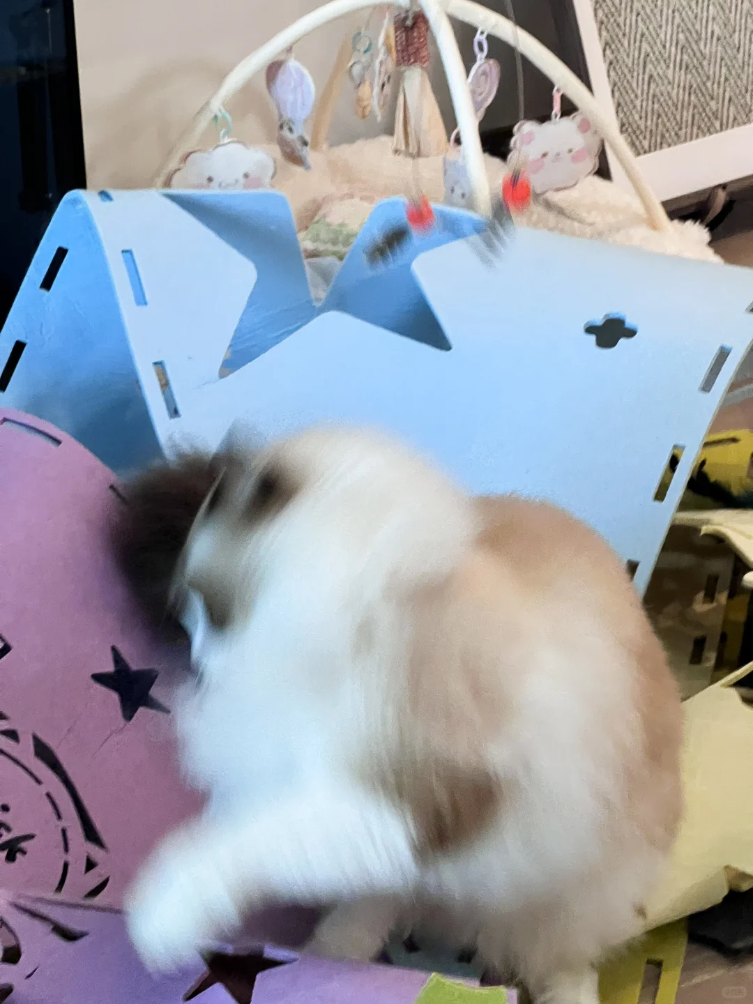 2. 游戏毯能使玩具的魅力放大。最近也聊过很多关于游戏毯的分享了,个人觉得游戏毯是养猫家庭必备的玩具之一。游戏毯能够提供小猫躲避藏身空间,帮助家长在模拟猎物的时候显得更逼真。除了游戏毯,类似p2甜甜圈这种隧道类玩具也能完美提供小猫藏身和休息的空间,是一款进可攻退可守的“猫咪堡垒”。属于长期主义消费选择,非常推荐。
