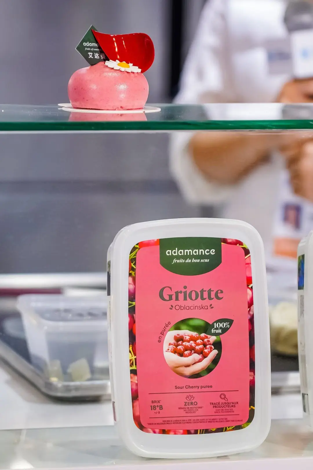 Savencia展位带来的中法美食之约真的太有趣了。作为来自法国的国际乳制品大企,Savencia展台展示了很多奶油🧈、奶酪、巧克力🍫、果泥还有各种烘焙西点原材料。像爱乐薇奶油、法芙娜巧克力,都是听到过的品牌。