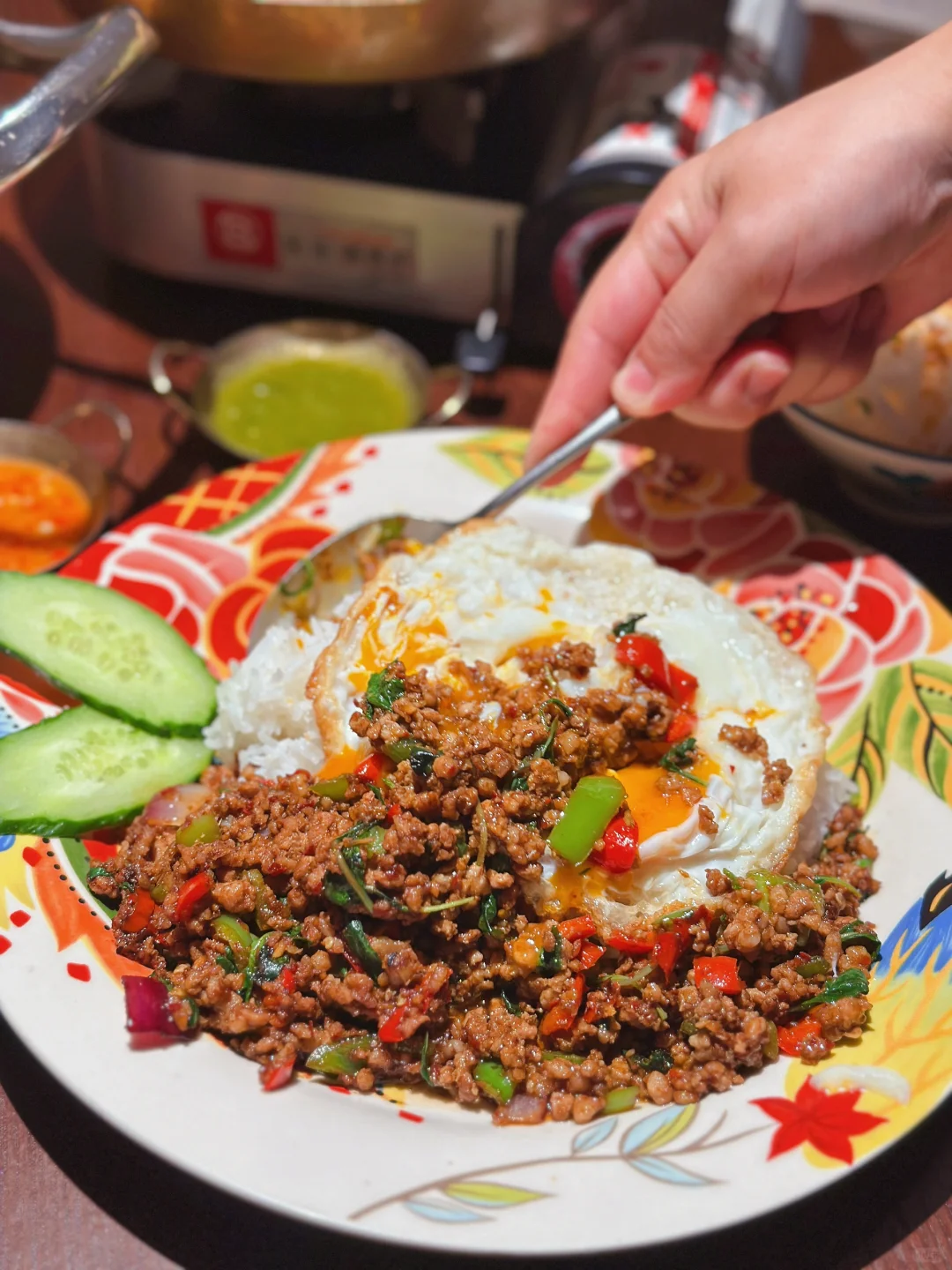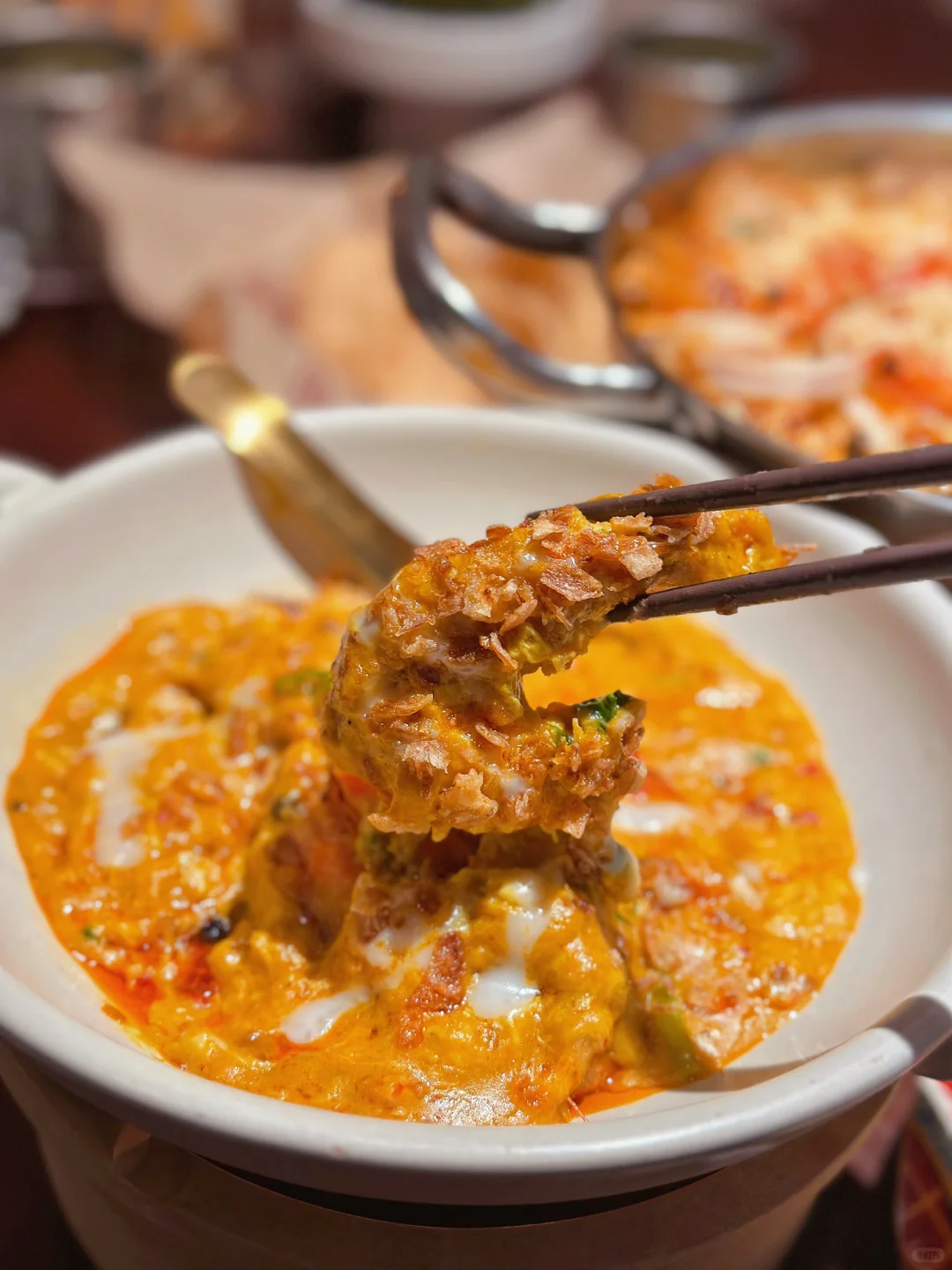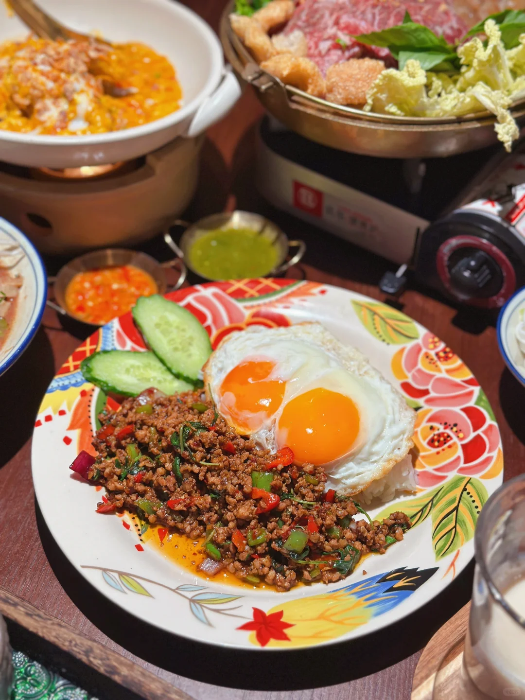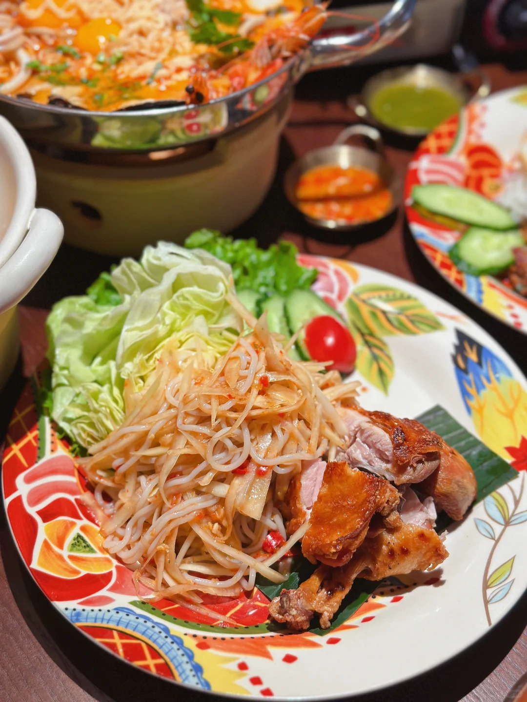 这年头谁还做吃预制菜的大冤种,这家是由有着三十年本土经验的🇹🇭总厨亲自现点现做的泰国船面,包正宗美味的。 · 🌈招牌鲜切牛肉(牛三宝)船面 牛肚、牛肉🥩、牛肉丸组成的这碗招牌船面,就连汤底都满是肉香,入口即化的面条老少皆宜。 · 🌈雪花牛上脑船面小火锅 天气渐凉来一锅这样的船面小火锅再合适不过了,热气腾腾的雪花牛上脑,不禁让人垂涎欲滴。 · 🌈人生泰奶/泰绿 在他家我还喝到了我的人生泰奶🧋,无论你喜欢绿茶底还是红茶底,伴着馥郁的茶香坐在室外的阳光下,惬意的享受午后的时光吧。