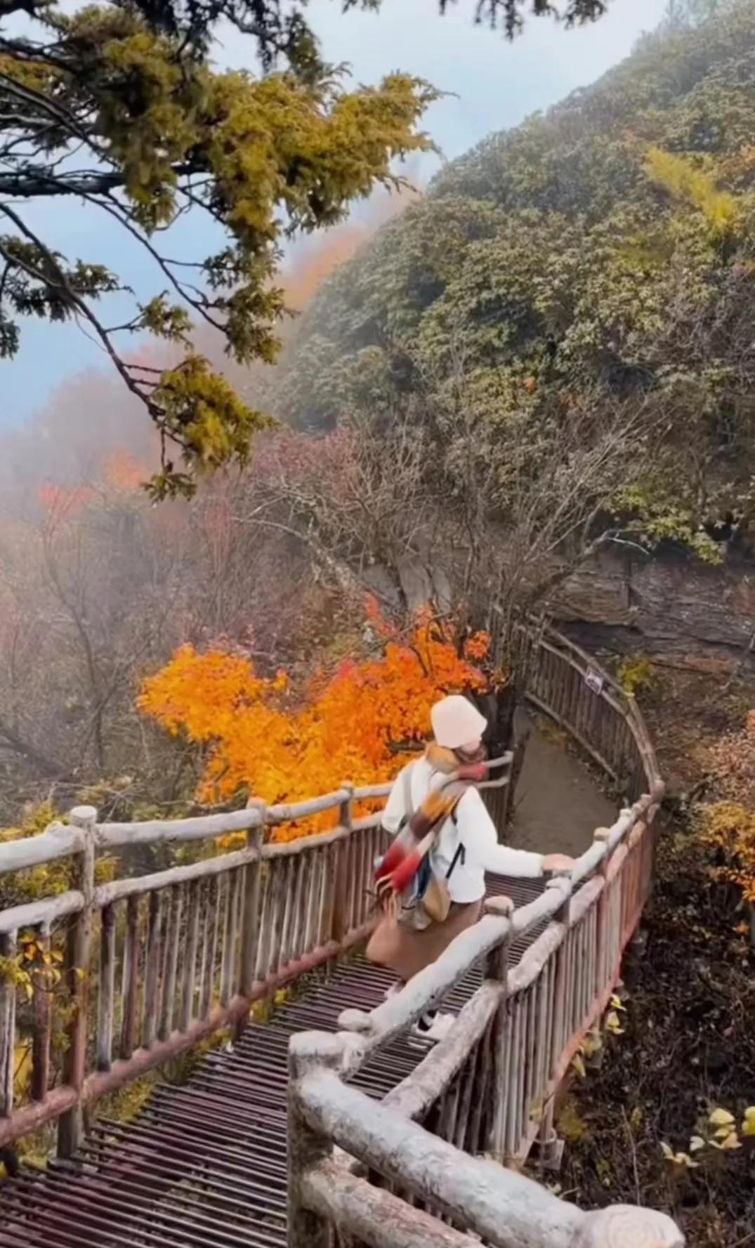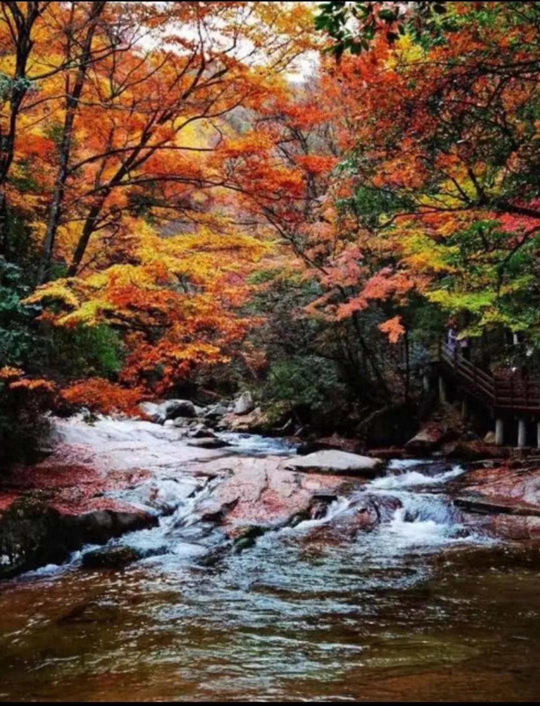 #记录旅游足迹# 光雾山观红枫林 四川巴中光雾山,红枫如画映天红。 山间小径铺满叶,步履轻盈踏秋烟。 枫林深处闻鸟语,溪水潺潺伴客前。 阳光斑驳照枫影,云雾缭绕似仙源。 光雾山前留倩影,林中溪畔映芳踪。 愿得此景长相伴,年年岁岁赏枫红。