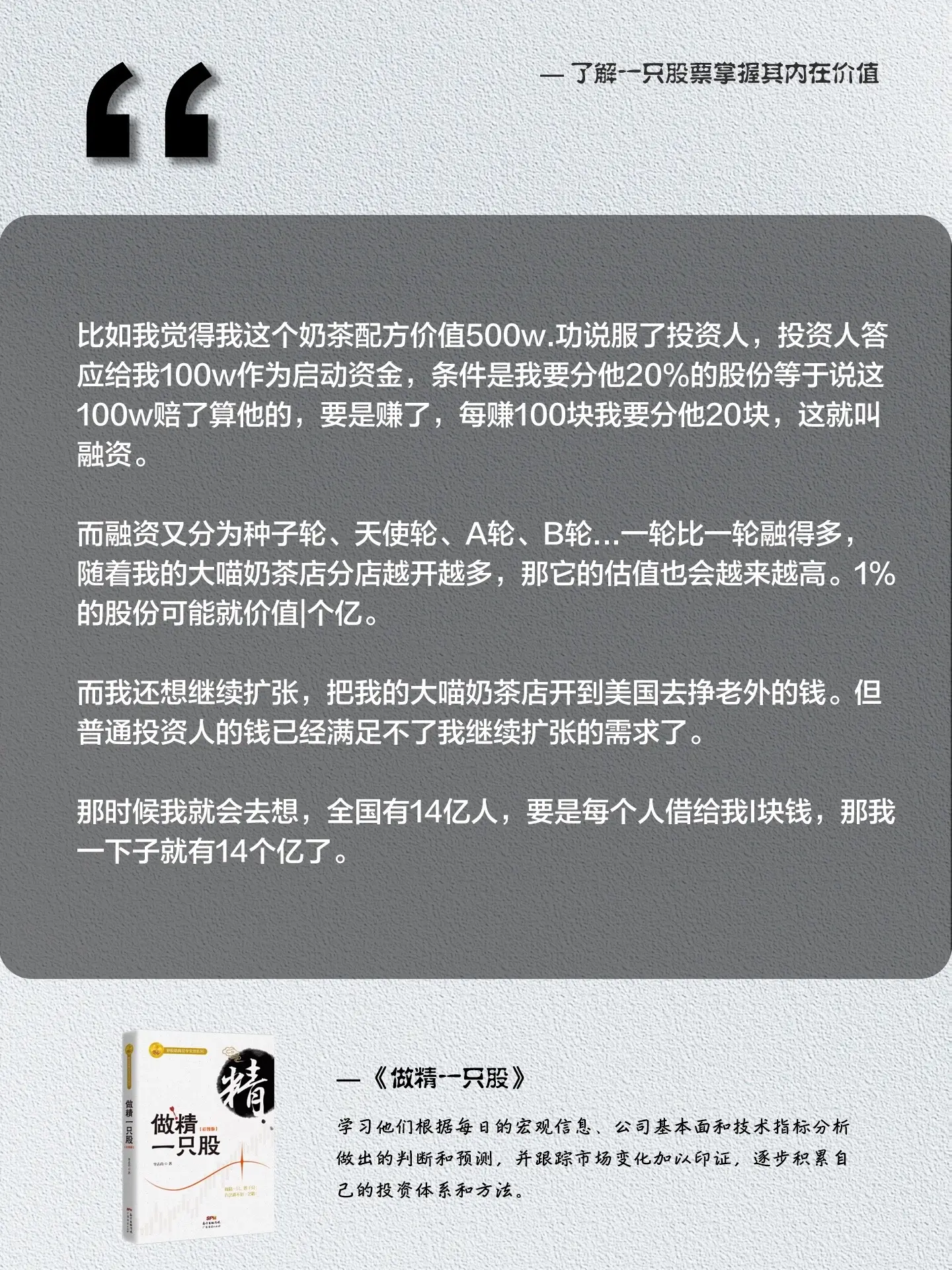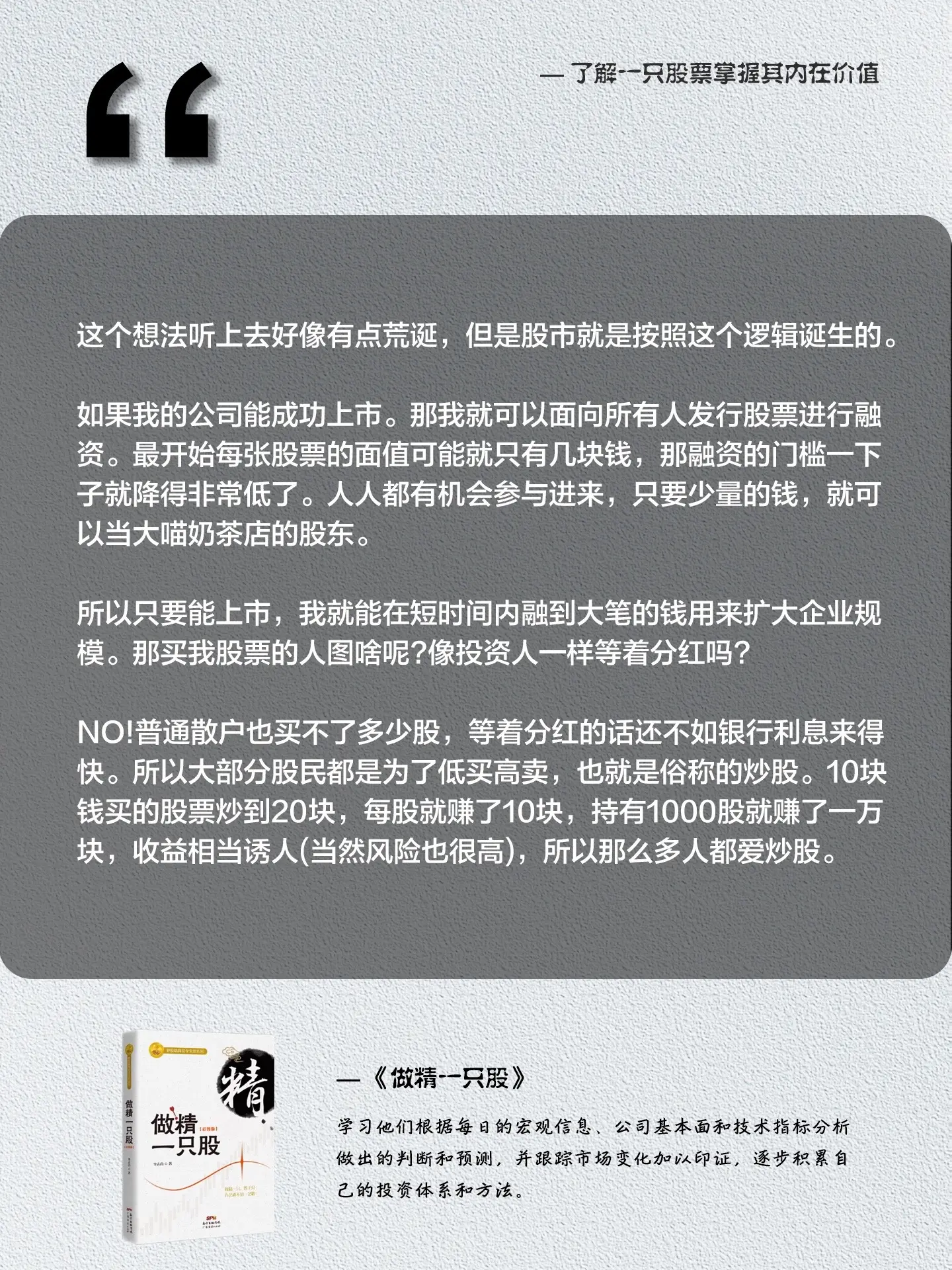 股市的大机会是等出来的,选股不如选时。机会不是天天有,一旦有决不错过。不然,价值低估,价值投资从何谈起?投机只为一时,更不是人人能为。上涨趋势捂股,下跌趋势捂钱。当发现中意的股票,低廉的价格买进,不到看好的价格不出手,即使市场有变化,也会事先有预示。按照趋势化来控制手中的筹码,又担心什么呢。这本《做精一只股》从股票介绍-政策分析-市场分析-股票性质等多方面进行了讲解,阐述了市场复杂多变的环境如何进行选股,也强调了专注于一只股票的重要性。股票市场充满了波动和诱惑,我们不能被短期的市场情绪所左右。要坚持自己的投资策略,相信自己的分析和判断,不为短期的涨跌而盲目买卖。总的来说通过做精一只股,我们可以更好地实现财富的增值和保值,需要的赶紧阅读起来吧!