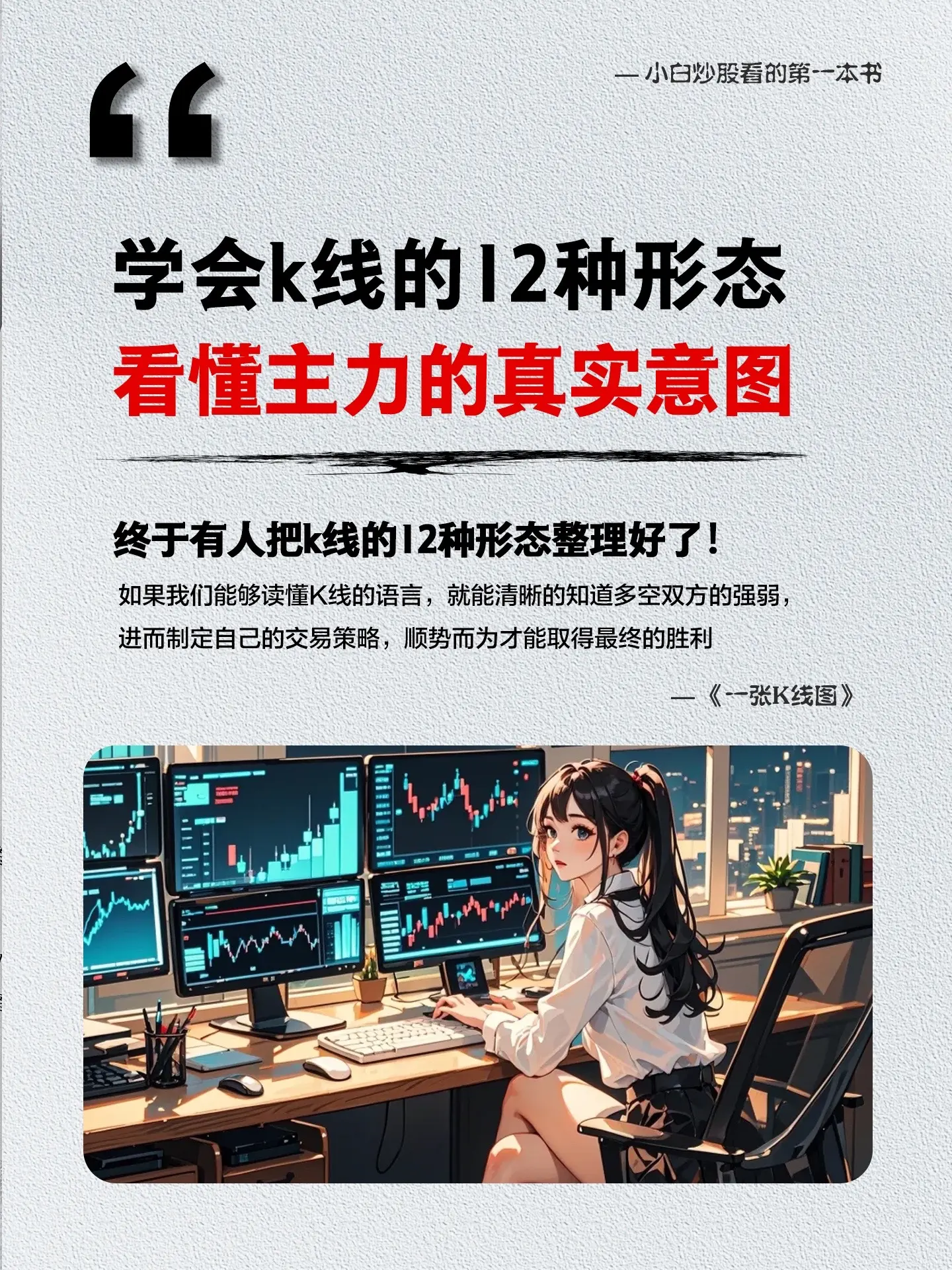 学会k线的12种形态,看懂主力的真实意图!终于有人把k线的12种形态整理好了,如果我们能够读懂K线的语言,就能清晰的知道多空双方的强弱,进而制定自己的交易策略,顺势而为才能取得最终的胜利!这本《一张K线图赢遍全球市场》,新手炒股必备,一套书让你成为股市高手。看懂K线图,是股民的必备技能之一,学习掌握一些经典的k线组合形态,也可以作为投资者用来判断市场走势的重要工具。内容简单易懂,条理清晰,用通俗易懂的语言,带大家轻松入门,让你快速掌握股票基础知识,提升看盘技巧,更快地识别市场趋势和机会。学习实战交易技法,提高交易的成功率,需要的,抓紧时间学习吧!