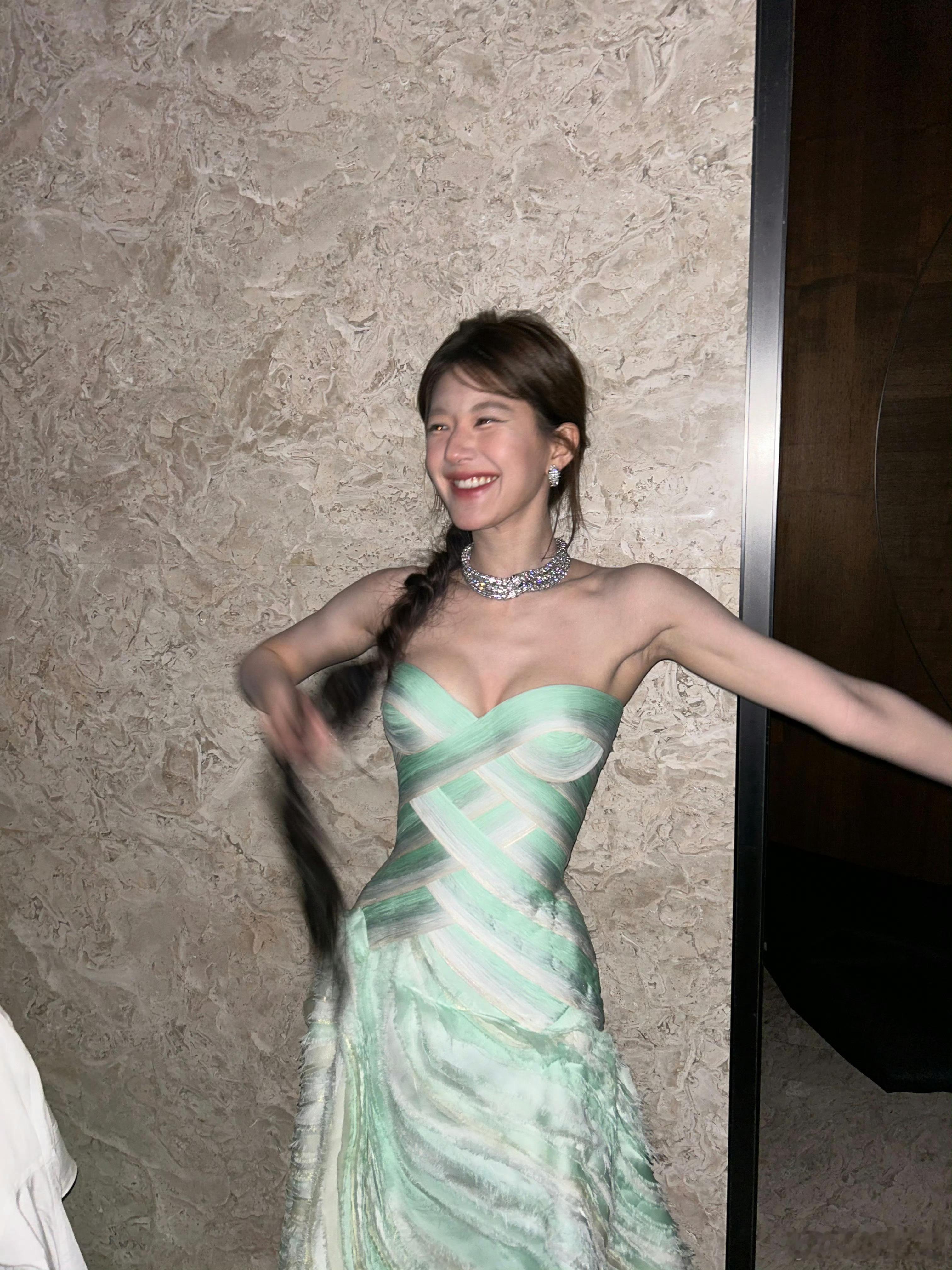 张天爱跟素人合影,胯真的好宽,大宅院似的