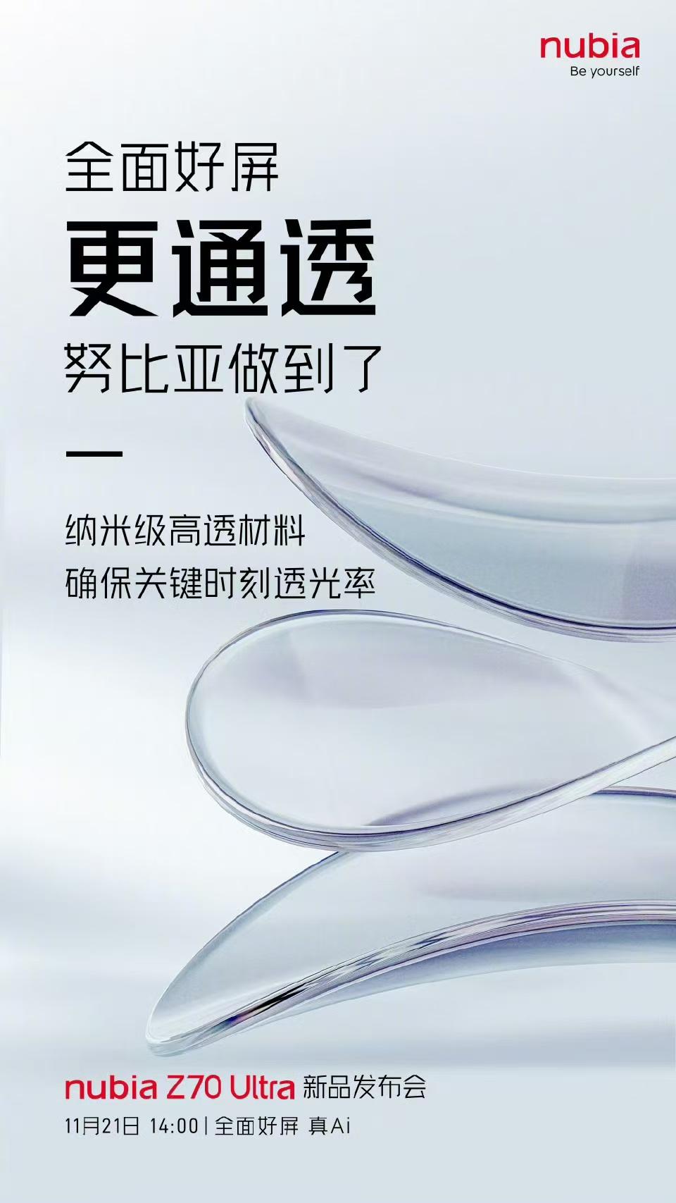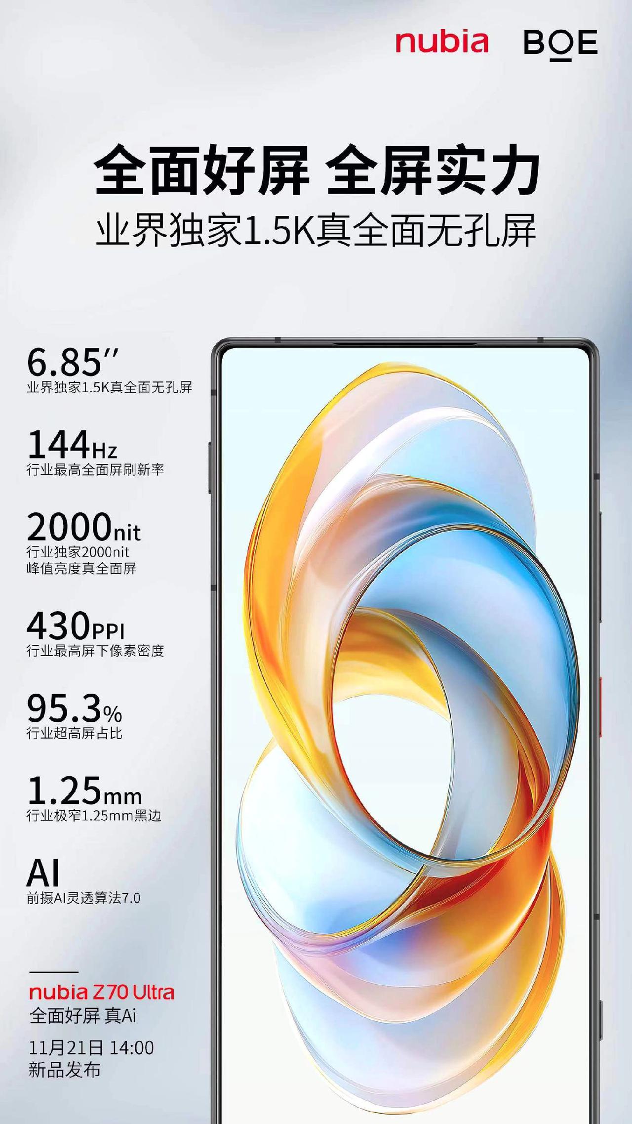 真全面屏时代来临,努比亚Z70Ultra发布会日期定档了,这屏幕还是有点厉害的