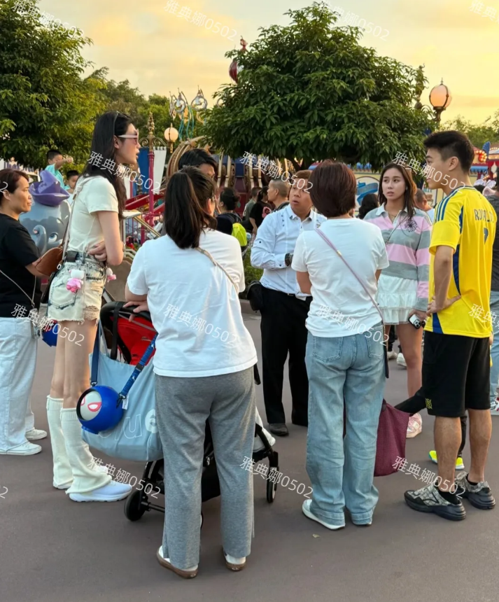 香港的迪士尼遇到奚梦瑶和何猷君还有小姑子何超欣。 奚梦瑶不愧是超模,身材太好了,又高又瘦又白,大长腿又细又直站在人群中太显眼了。 何猷君浓眉大眼很年轻,很有少年感。