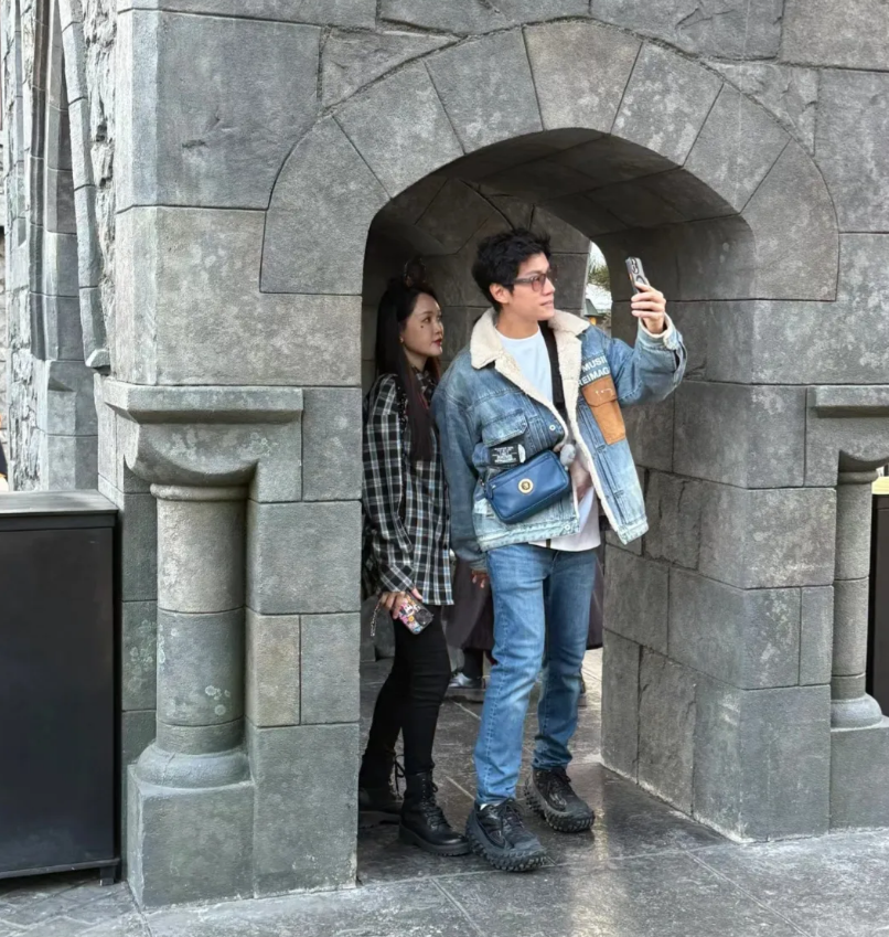 环球影城偶遇陈乔恩,45岁的她虽然看起来很年轻,但脸却有点儿僵,拍照的时候表情很不自然。 她老公脚上穿了一双底特别厚的鞋子也没有很高,两人十分恩爱。