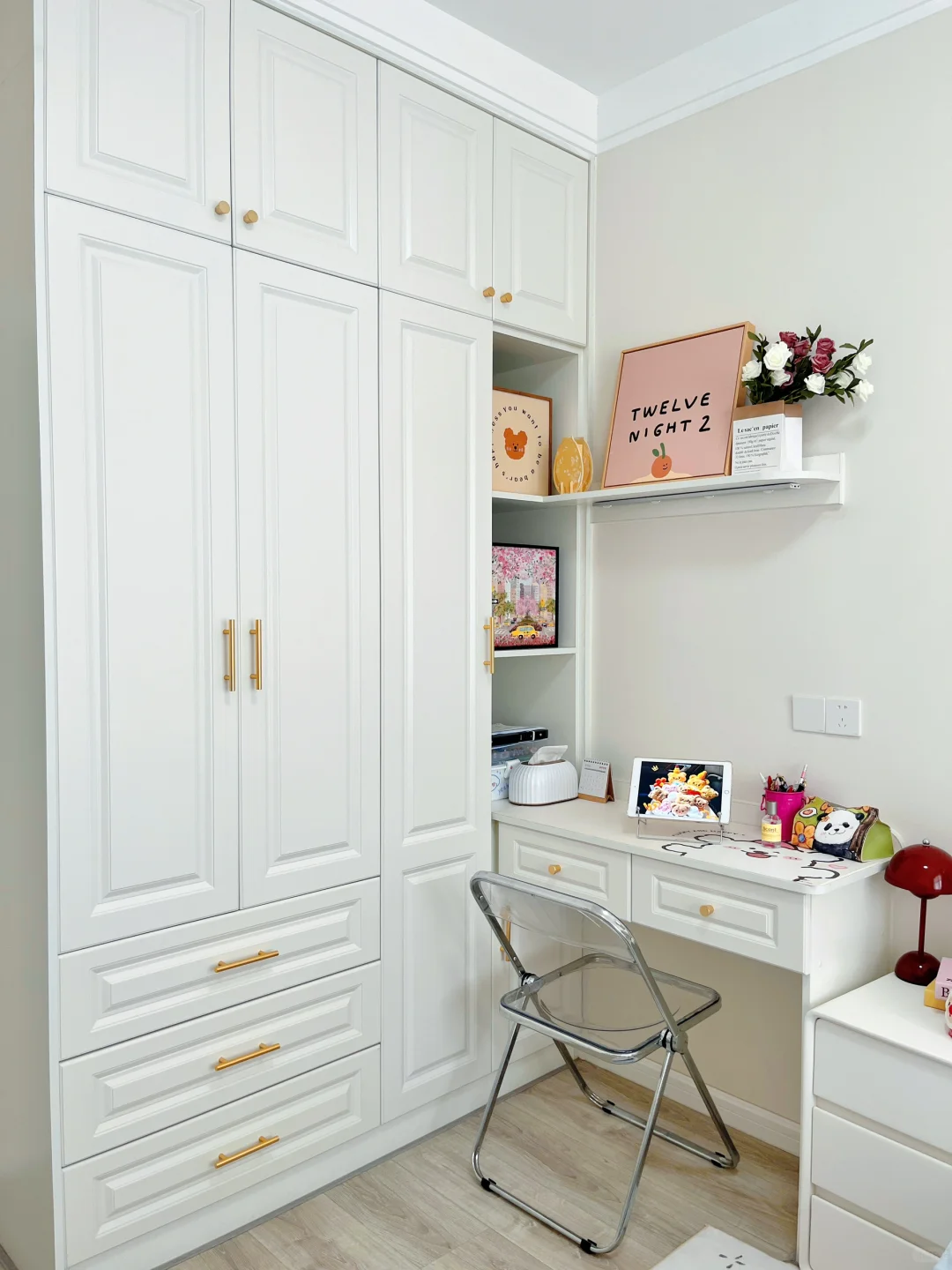 这个房间很小!仅仅10平! 紧紧凑凑的房间超有安全感! 奈何我还要1.8大床!还有一个书桌展示柜! 衣柜书桌一体化设计!