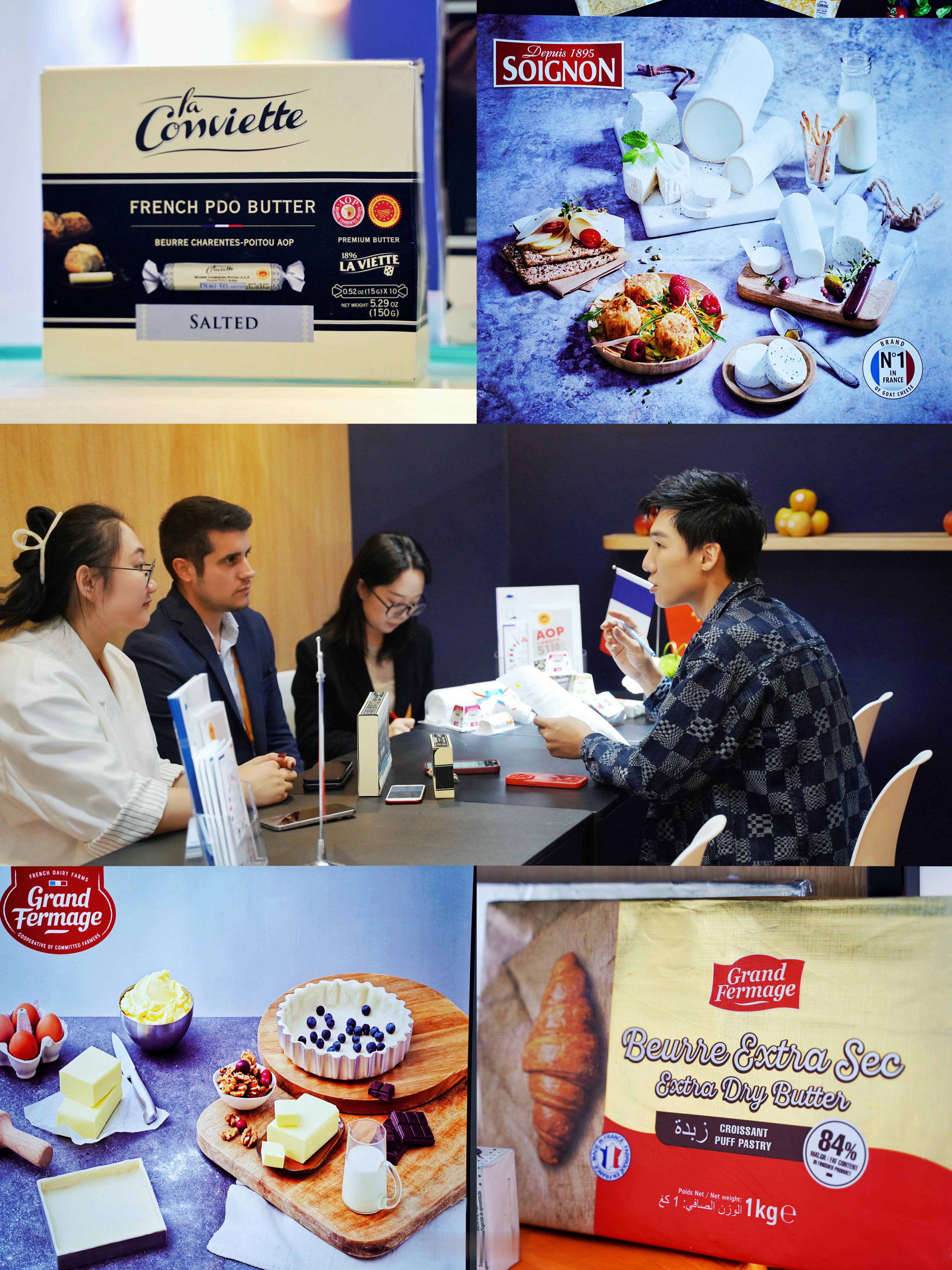 无论你是烘焙届的新手小白还是资深老手,我都建议来进博会1.2馆A4-04的法国美食馆展位逛逛,像Eurial法国优越乳品展位的黄油、奶酪和马苏里拉芝士等等,各种传统新颖的优质乳制品,玲琅满目,我特别从展位里挑选了几款和大家分享。