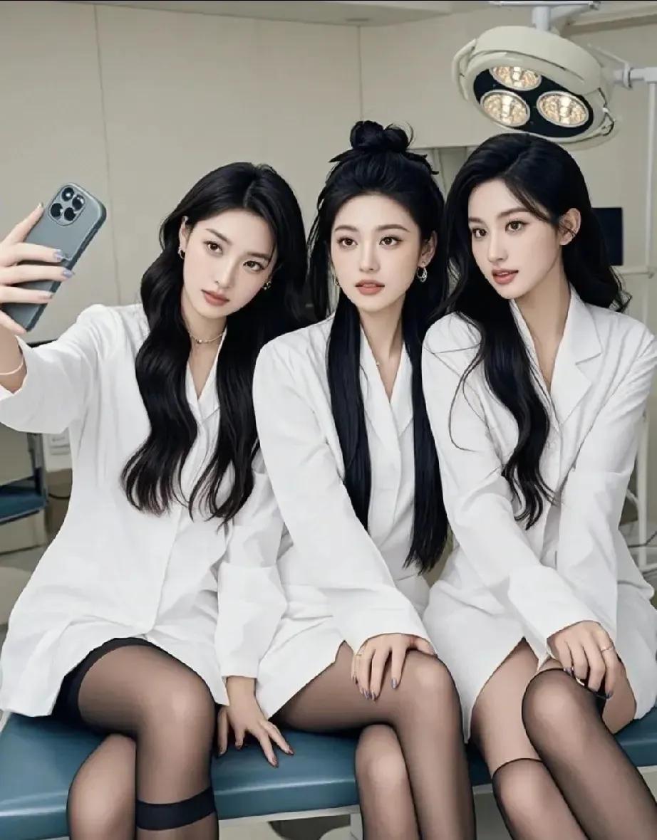 身穿一袭白衣,女护士们是医院里的守护者,她们用柔弱的肩膀担负着沉重的职责,为病人的健康竭尽全力。 医院里刚来的三位美女护士