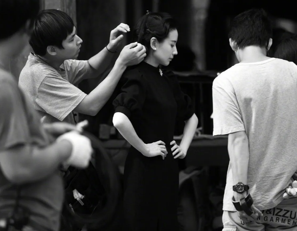 董洁晒片场照,她真的很适合年代戏,穿上旗袍太美了,五官秀气柔和气质清冷独特,柔中