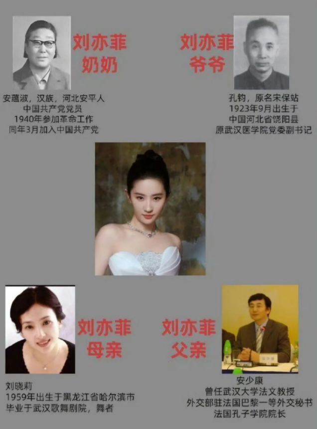 刘亦菲姥姥家的基因太强大了,三代都是绝色美女,奶奶家书香门第一家子全是高知,所以
