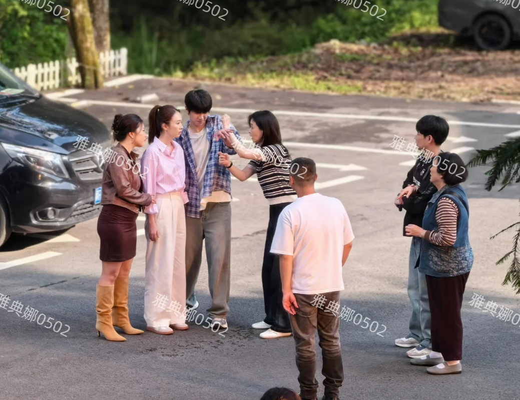 张天爱跟素人合影,胯真的好宽,大宅院似的