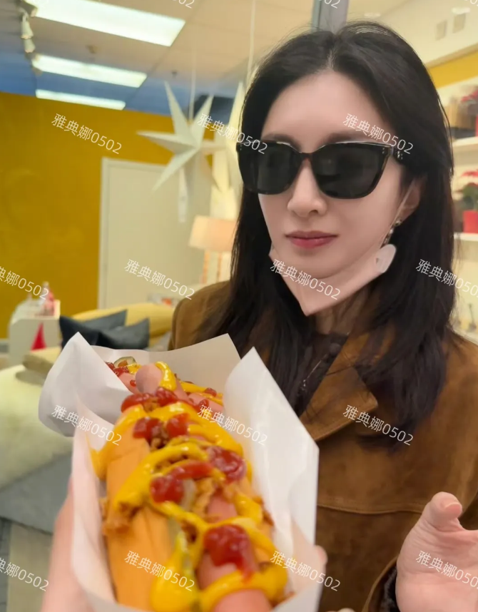 38岁的长相老气的江疏影嘟嘴卖萌作可爱状真的很违和。 她晒出自己在宜家的照片,一边大口吃烤串一边吃热狗,对于瘦成纸片人的女明星来说也不知道是真吃还是摆拍。