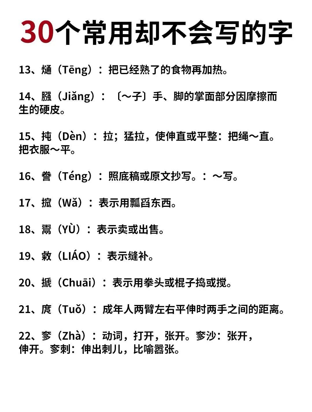 30个常用却不会写的字