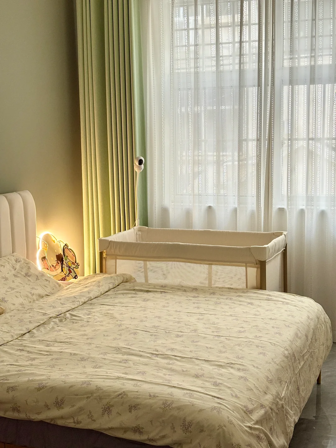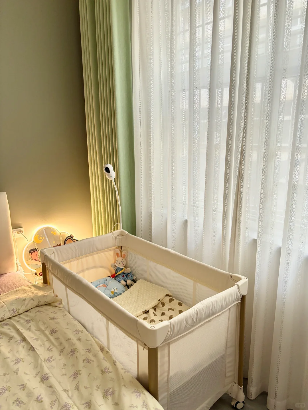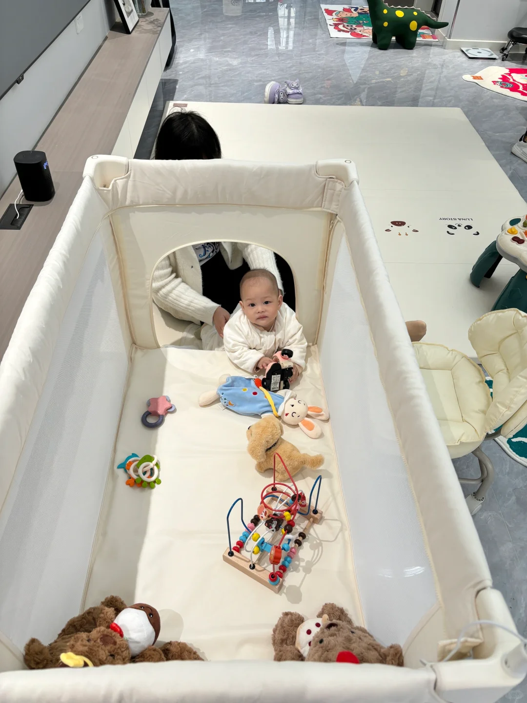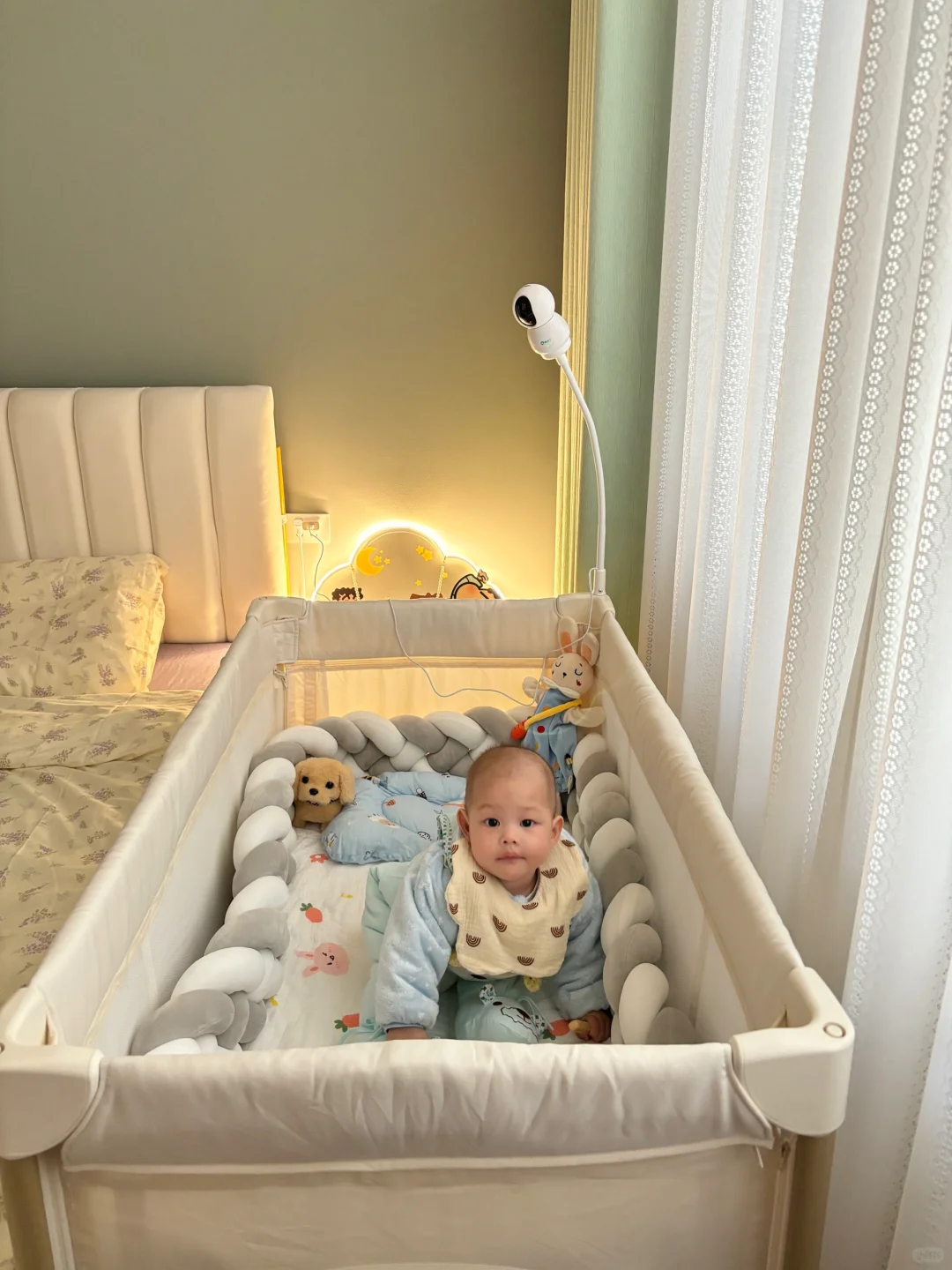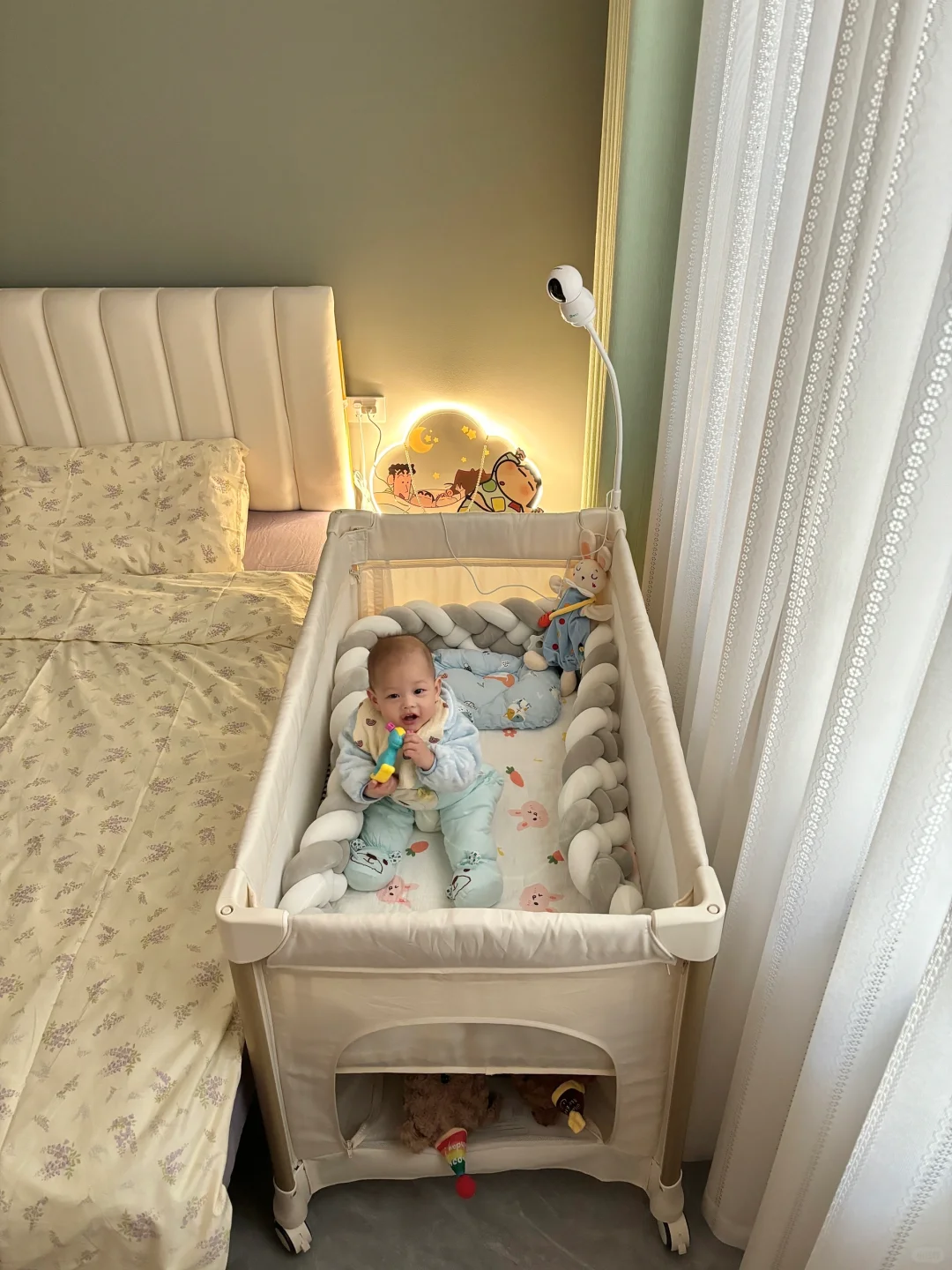 最近给妈妈的卧室安排了一张多功能婴儿床,既是独立床、拼接床,还是游戏床、围栏,站立扶走,一床搞定,静音万向轮可以自由推到客厅and卧室玩耍睡觉,而且便携,不占用空间,2s一拉折叠成背包大小,回娘家小住,出门旅行,带着都不累,自带360度旋转智能摄像头,可以时刻看到宝宝状态,不在家时候也能观察宝宝,我妈直夸说有它带娃太轻松啦
