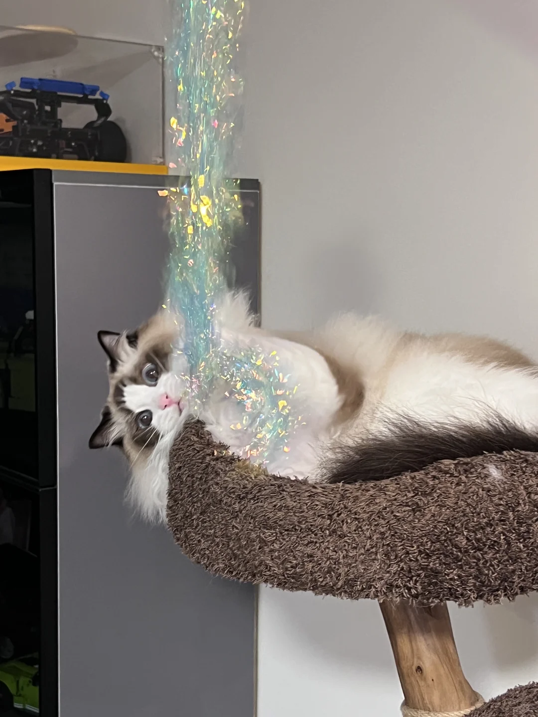 特别简单,只需要一款布灵布灵的彩带就可以轻松拥有同款布灵布灵猫咪围脖啦[doge] 又能玩又能臭美,我给这款猫咪玩具💯