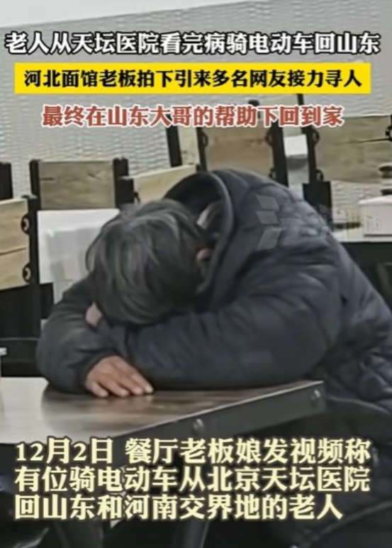 太不容易了!河北廊坊,老人骑电动车赴京看病,中途在一家小面馆歇脚,因为没有多少钱,老人只好蹲在角落里啃干馒头,老板娘看到后,立马煮面相赠,可老人执意要付7块6毛钱,这时候的老板娘才知道老人的故事,感人事迹在网上传开后,网友接力寻人,帮老人平安返乡! 在这个寒冷的冬日,一个普通的面馆里,上演了一幕温暖人心的故事,这个故事的主角,是一位风尘仆仆的大姨,她头发花白,衣着朴素,脸上的皱纹诉说着岁月的沧桑,当她推开面馆的门时,没有人知道她经历了怎样的艰辛。 大姨的电动车快没电了,她小心翼翼地询问老板娘,能否借个地方充电,老板娘看出了她的窘迫,二话不说就帮她把车接上了电源,大姨连连道谢,眼里满是感激之情。 “大姨,您别客气,电充满了再走,不收您钱。”老板娘的一句话,让大姨的眼眶湿润了。 原来,大姨从山东远道而来,到北京的天坛医院看病,一路上,她省吃俭用,就怕花光了仅有的积蓄,此时此刻,她的电动车后座上绑着简单的行李,车篮子里装着她的药品,用塑料袋仔细包裹着,生怕风吹日晒。 老板娘请大姨在店里坐下,大姨却从口袋里掏出一个干巴巴的馒头,小口小口地啃着,看到这一幕,老板娘的心像是被针扎了一下,她赶紧走到后厨,嘱咐厨师多下些面,然后端到大姨面前。 大姨手足无措,从口袋里掏出了7块6毛钱,想要付钱,但老板娘坚决不收,“大姨,您别客气,这碗面我请您。”大姨的眼泪再也控制不住,夺眶而出,她一边吃着热腾腾的面,一边向老板娘诉说着自己的不易。 原来,大姨独自在外看病,没有家人陪伴,一路风尘仆仆,此时,能吃上一碗热乎的面,对她来说是莫大的慰藉,吃完面,老板娘又给大姨准备了几个馒头和一些小菜,让她在路上充饥。 大姨的故事,通过老板娘的视频,传到了网上,无数网友被这个淳朴善良的老人感动,他们纷纷表示愿意伸出援手,帮助大姨度过难关,一位山东的大哥更是直接开车,沿途寻找大姨的踪迹。 当他找到大姨时,大姨正在路边休息,得知有人专程来接她回家,大姨激动得说不出话,在回家的路上,她终于不用再受冻挨饿,不用再独自承受病痛的折磨,她感受到了来自陌生人的温暖,这份温暖,让她的泪水止不住地流下。 回到家乡,大姨坚持要拍一段视频,向所有关心她的人表达谢意,“我没想到,会有这么多人关心我,帮助我。我现在平安到家了,真的太感谢大家了。”朴实的话语,道出了大姨的真挚情感。 大姨的故事,让无数人潸然泪下,她给老板娘的7块6,是她全部的家当,她一路风餐露宿,只为了省下医药费,她对他人的帮助感激不尽,那份质朴的心灵,让人动容。 这个故事,也让我们看到了互联网的力量,是网络,让素不相识的人们连接在一起;是网络,让我们看到了社会的温度;是网络,让爱和善意得以传递和延续。 从老板娘到山东大哥,从无数关心大姨的网友,到为大姨加油鼓劲的人们,每一个人都是善意接力的一环,每一份爱都汇聚成了照亮大姨回家路的光芒。 大姨的故事,也给了我们深深的感悟,在这个世界上,没有谁可以独善其身,每个人都可能面临困境和挫折,每个人都需要来自他人的理解和帮助,当我们伸出援手,给予他人温暖时,我们也在点亮自己的心灯,这就是人性的光辉。 愿大姨的故事,能够激励更多人去关注身边的困境,去伸出援手,去传递爱的力量,愿更多像大姨一样的人,能够感受到社会的温暖,能够重拾对生活的信心和希望。 在这个寒冷的冬日,我们每个人都可以成为温暖的传递者,让我们用爱去温暖这个世界,用善意去照亮每一个角落,相信只要我们携手前行,定能创造出更加美好的明天。 大姨,祝您早日康复,祝您生活幸福安康,您的故事,已经成为了无数人心中的一盏明灯,指引着我们前行的方向,感谢您,让我们看到了人性的光辉;感谢您,让我们感受到了爱的力量。 让我们一起,用爱和善意,去温暖这个世界,让每一个像大姨一样的人,都能感受到人间的温情,让我们携手前行,创造一个充满爱和希望的明天。 这,就是大姨故事带给我们的启示,这也是我们每个人应该肩负的责任和使命,让爱成为我们前行的动力,让善意成为我们生命的底色,相信只要我们坚持不懈,定能让这个世界变得更加美好。 (主要信源:法治进行时)
