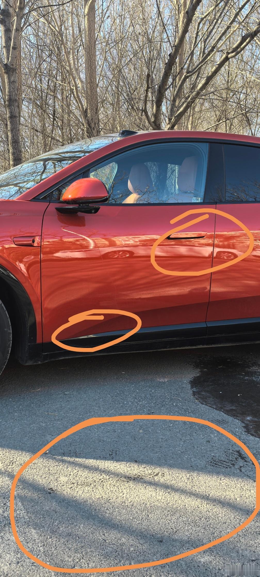 还听说有位博主智慧过人,迅速发现理记的乐道L60是二手车,还发现了车底有擦伤痕迹。我这一看哪里是车底擦伤啊,是整个车身漆全都花了,大家看,根本不是完整的橙色,乱七八糟的。大家看图,还漏油。