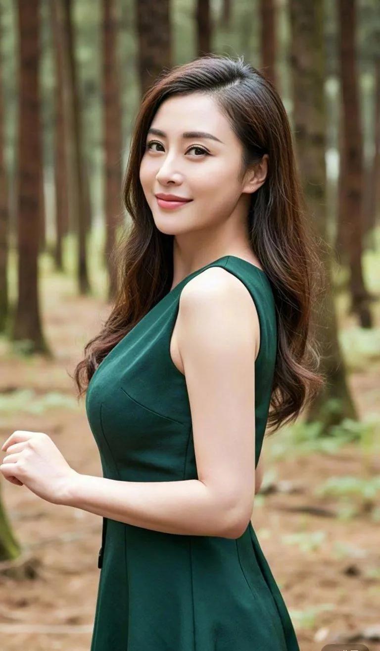 身着绿裙的美女,她的美丽和绿色一起,让人感到生机勃勃的气息。