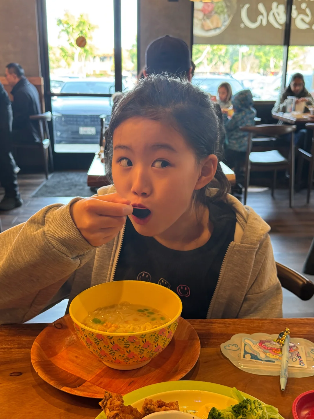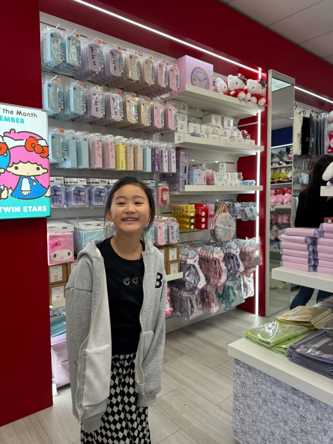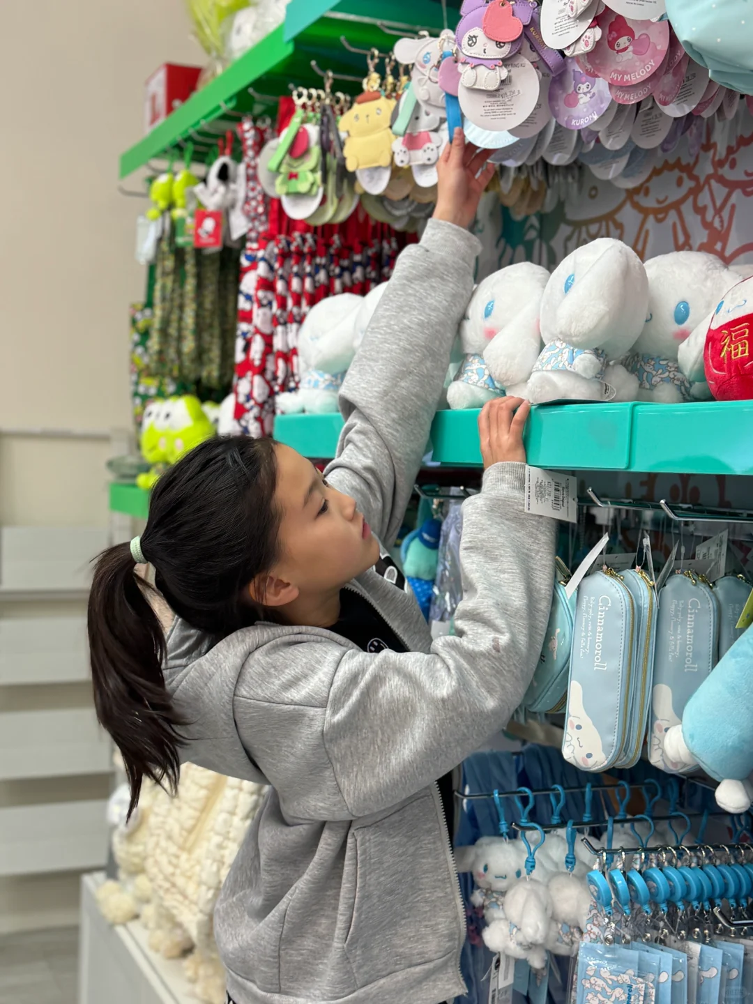 因为马上要开~板~啦~ 最近白回来了点因为每天游泳训练的时候已经天黑了,所以游泳不晒了,马上要改成滑雪晒了[偷笑R][偷笑R][偷笑R] 今天带姐姐去排了三丽鸥的店,排队的人明显少了很多,排了大概十分钟就进去了,但是姐姐有点小失望,没有啥想买的东西,她说还是喜欢日本三丽鸥的店,我说来都来了好歹买点啥吧,最后姐姐非常勉强地挑了根笔和一包贴纸,我说谢谢闺女给我省钱,这要是带弟弟来,钱包不给我掏空他是不能罢休的[叹气R]