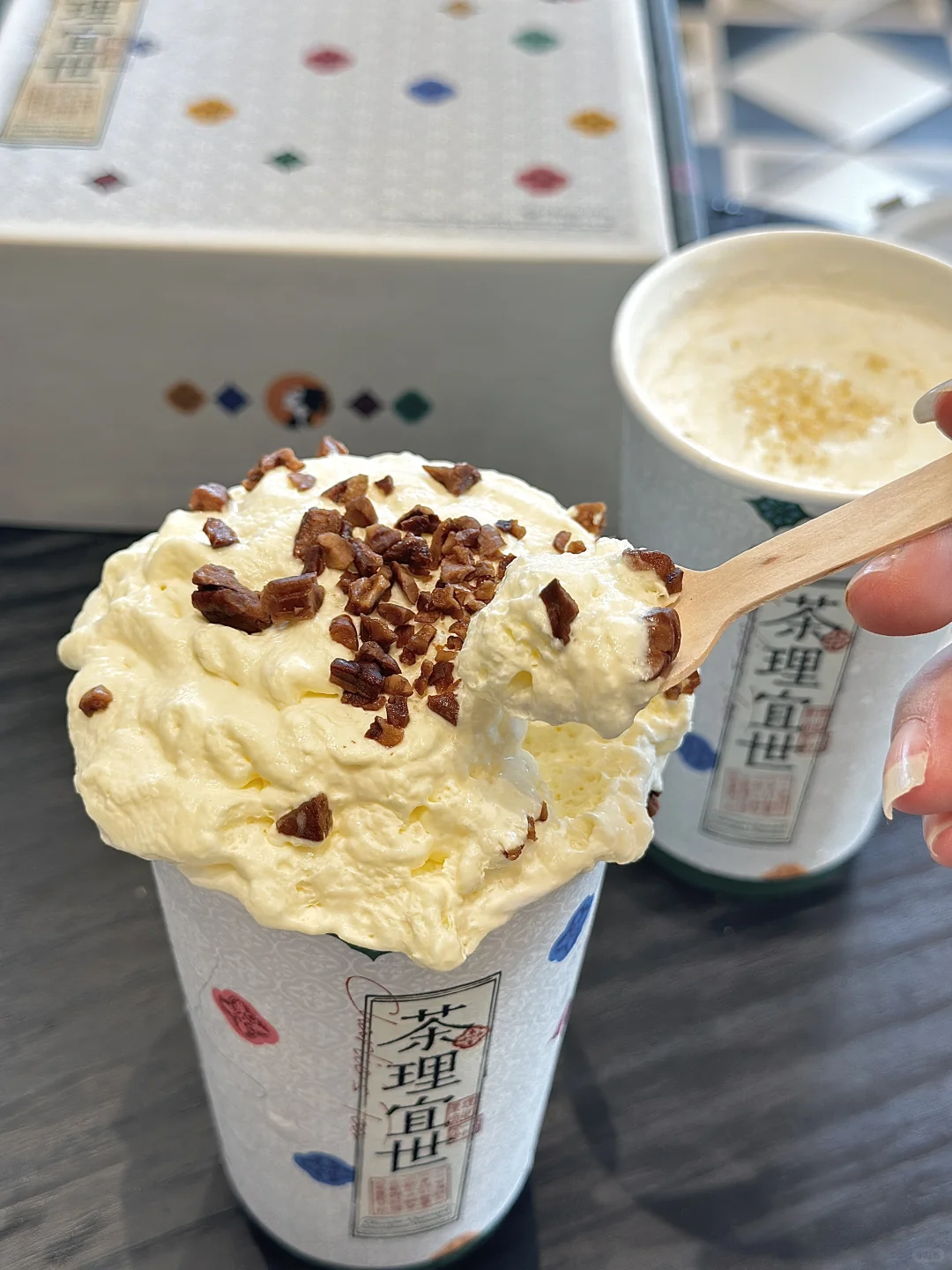 发现在广州很🔥的茶理宜世来到新山Austin了! 门口招牌超大的 还有个大大的奶茶杯好可爱 点了两杯网上超火的⬇️ 🍃郁郁幽兰 锡兰红茶底加少糖我蛮喜欢的~ 这款是有奶油顶的!可以一个人吃完不会腻那种! 很喜欢奶油上的碧根果碎,吃起来有点咸香咸香的! 🍃烟雨乌龙 很清新的乌龙茶香 还有点淡淡的白桃果香 上面还有一层奶沫,整体很清新顺滑 少糖的好喝! Charlie’s Tea 📍31, Jln Austin Heights 7/7, Taman Mount Austin 🕒11am-12am