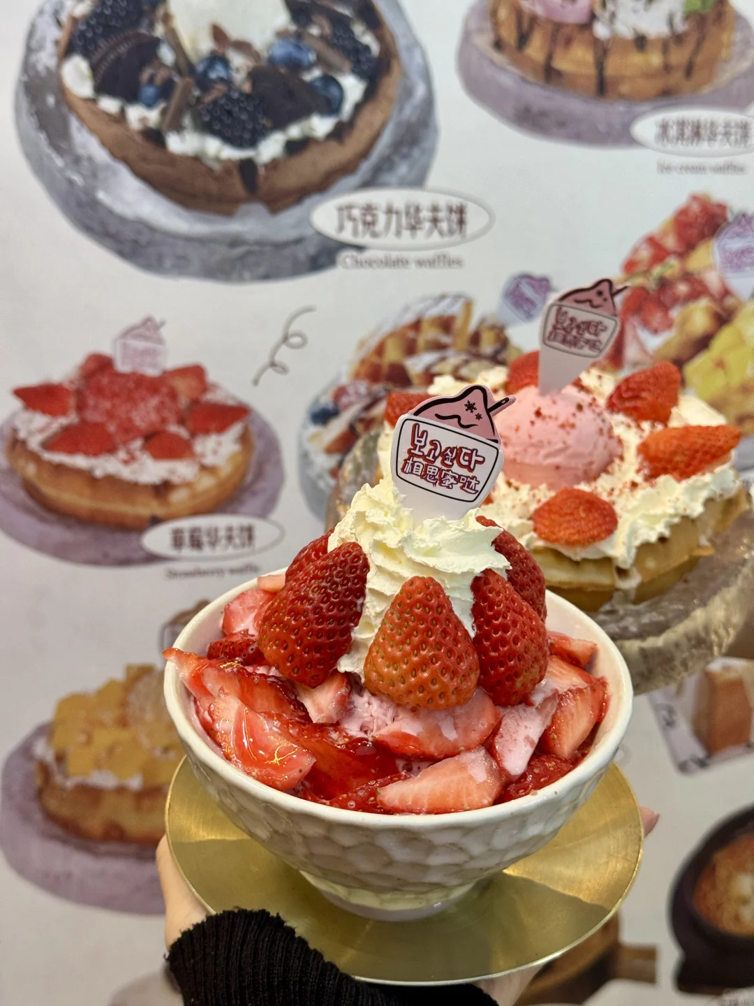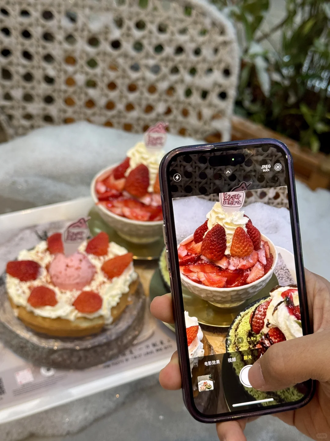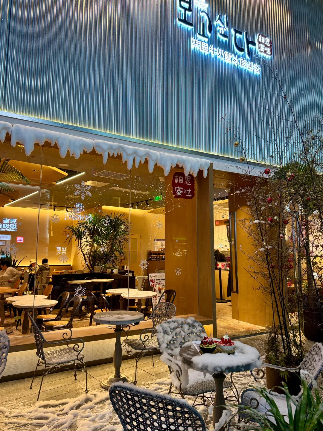 不去沈阳,在重庆就能吃到超好吃的草莓雪冰啦 这可是沈阳人记忆中的味道啊 店里打造的浓浓圣诞装饰和雪景 好有氛围,再用CCD拍照好美呀📸